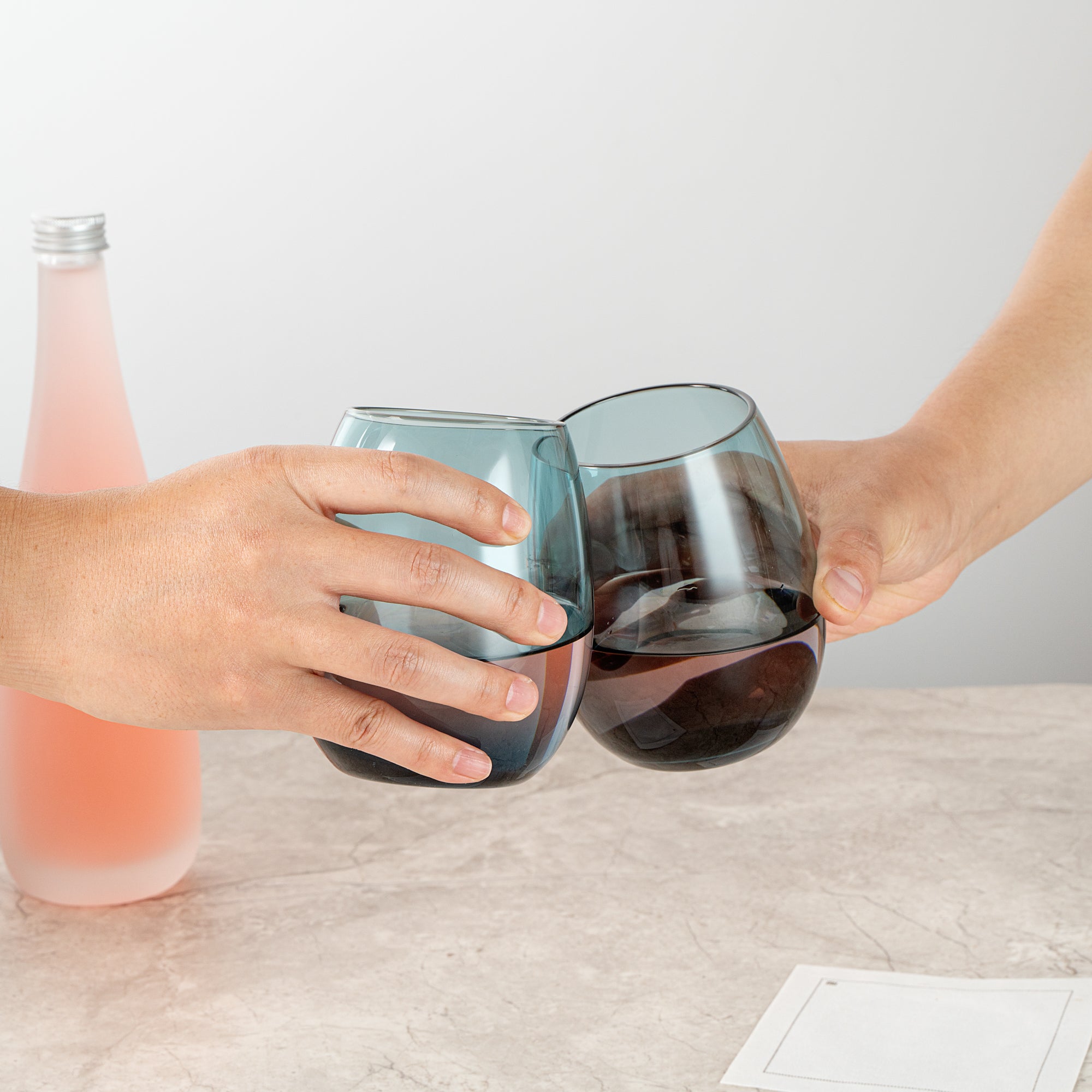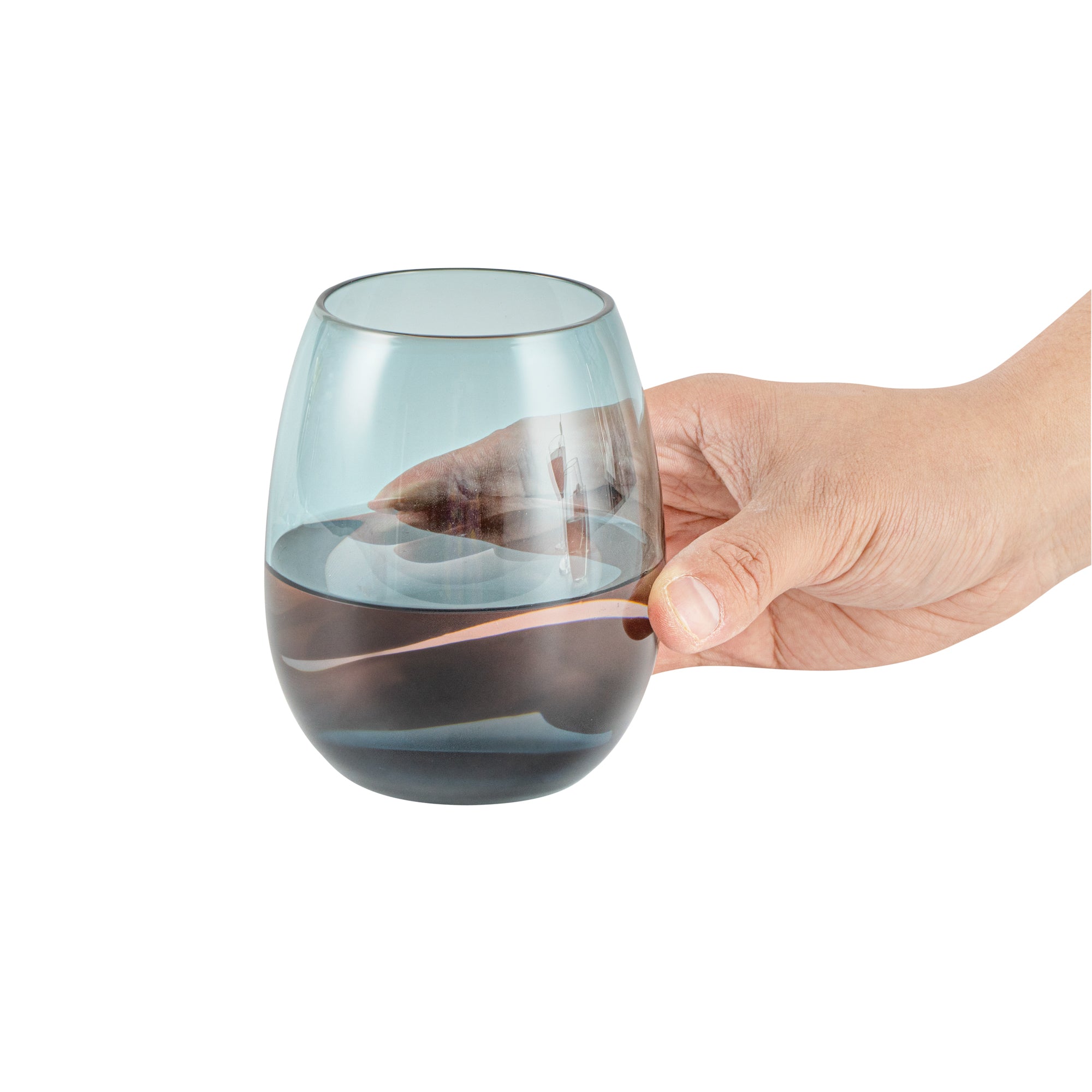 Bring your beverage presentation to the next level with our Vetri 15-ounce Blue Stemless Wine Glasses. These stemless wine glasses ensure optimal stability on any table or countertop, making them perfect for busy restaurants and bars. Featuring a rolled rim, these wine glasses provide easy sipping for your guests. The stylish blue finish of these white wine glasses helps create an invigorating tabletop and uniquely complements your signature drinks. Crafted from lead-free soda lime glass, these bar glasses are durable and withstand daily use, making them ideal for serving drinks at busy bars and restaurants. These red wine glasses are dishwasher-safe and allow for a hassle-free cleaning experience. Measuring 3.66 inches in diameter by 4.33 inches in height, these beverage glasses have a generous capacity of 15 ounces, perfect for serving a variety of beverages. Sold in a 24 count box.