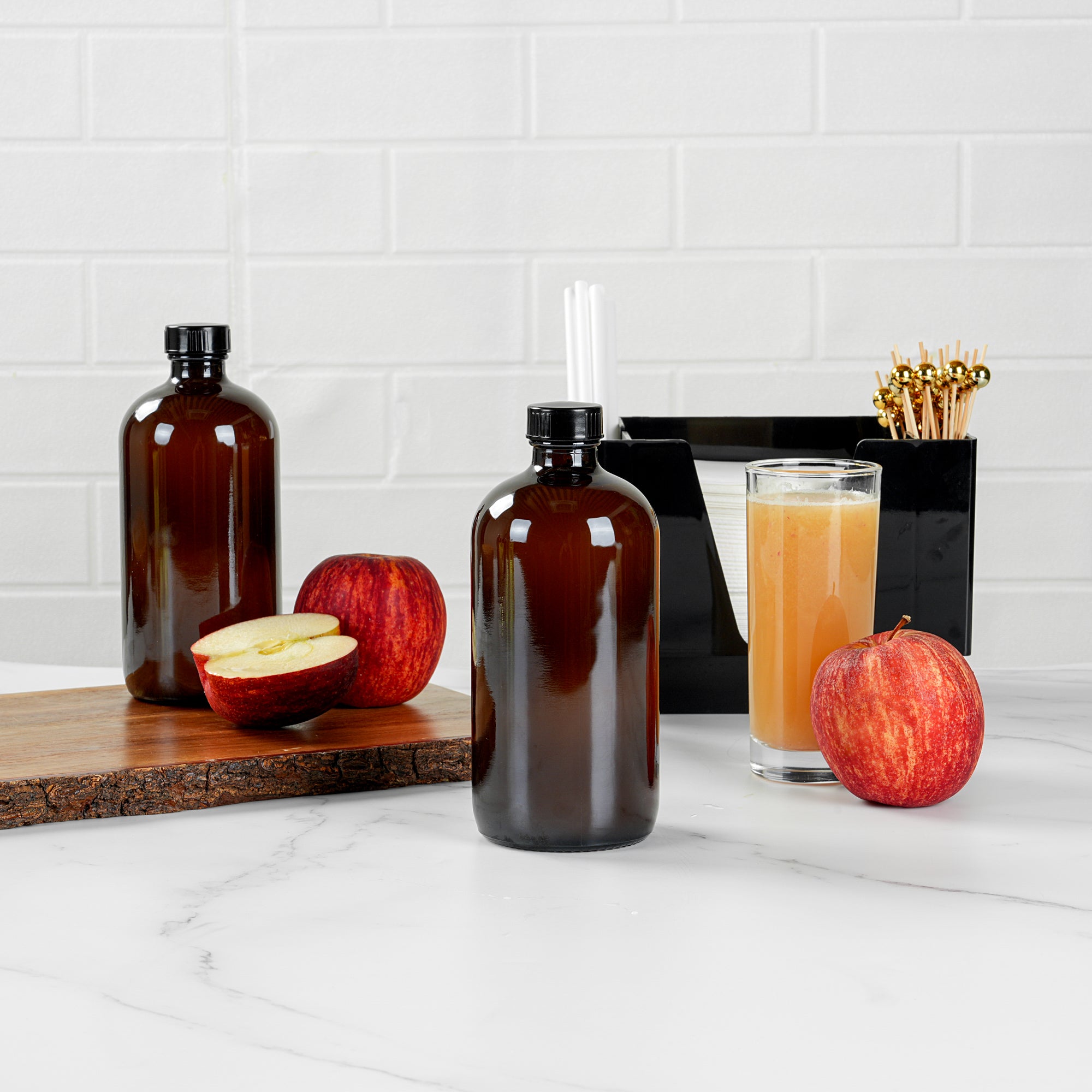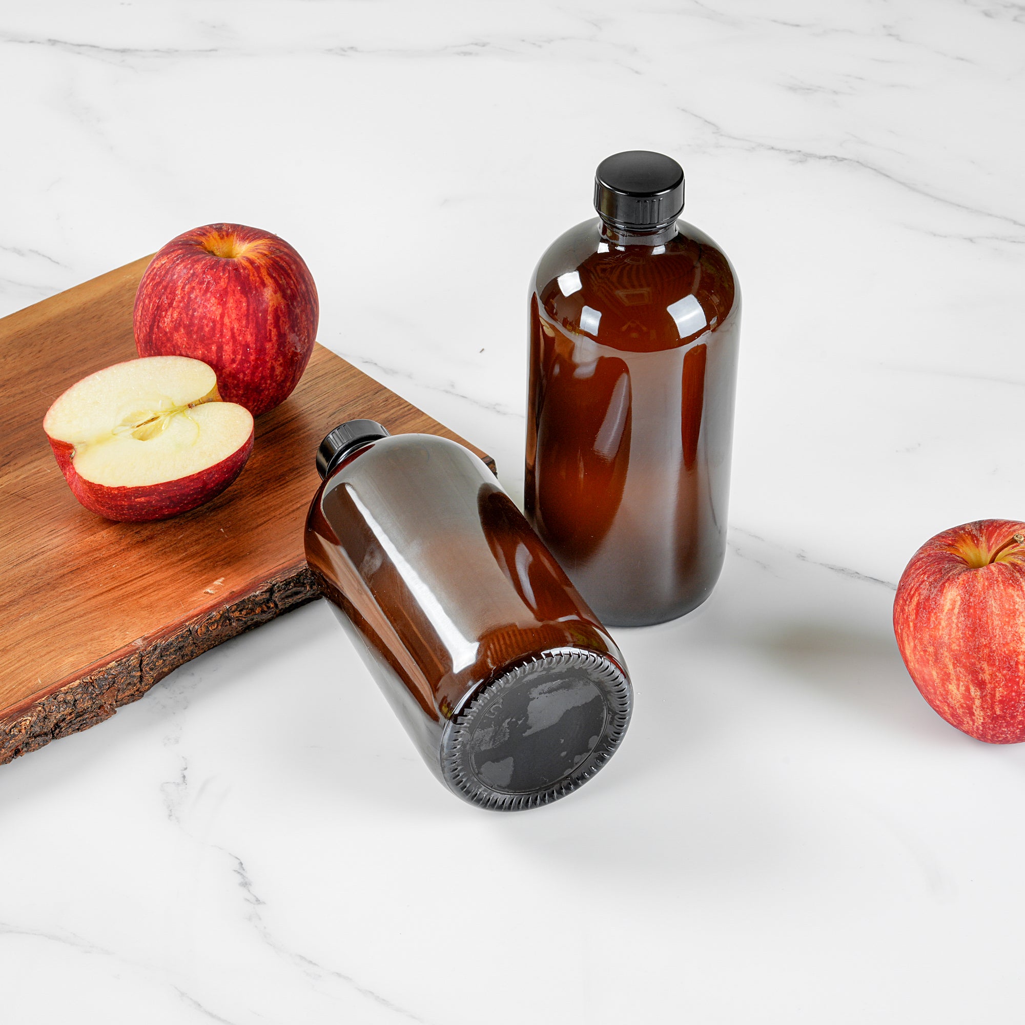 Enhance your storage solutions with our Vetri 16-ounce Boston Round Amber Glass Bottles. These glass bottles coem equipped with black phenolic caps that provide a secure, airtight seal, ideal for preserving liquids and extending shelf life. Crafted from premium soda lime glass, these amber bottles offer excellent durability, making them perfect for displaying and storing various liquids. Featuring a narrow mouth, theseglass bottles with lids allow for controlled pouring and minimize spills, ensuring liquids are stored securely. With an amber finish, these Boston glass bottles shield contents from UV light, making them perfect for preserving light-sensitive liquids and extending their shelf life. Designed for easy maintenance, these empty bottles are dishwasher-safe, facilitating a quick and hassle-free cleaning experience. Measuring 2.94 inches in diameter by 6.64 inches in height, these amber glass bottles have a total capacity of 16 ounces, making them ideal for various storage needs. Sold in a 12 count box.
