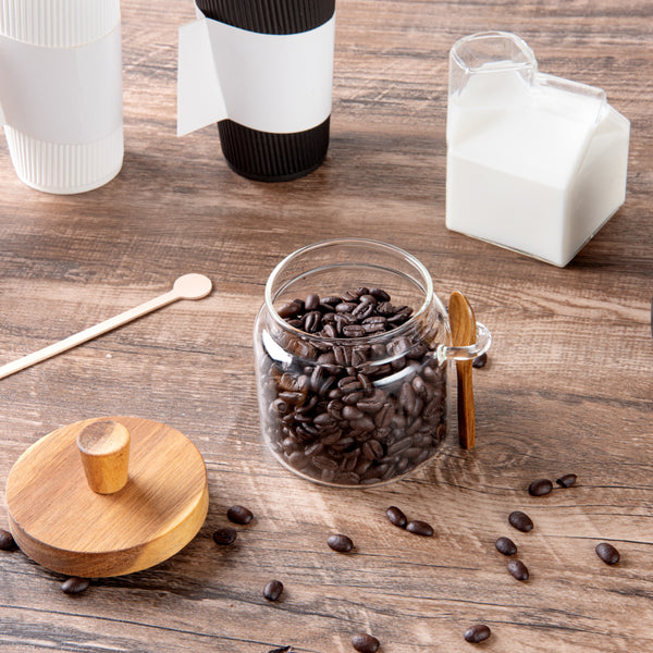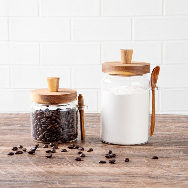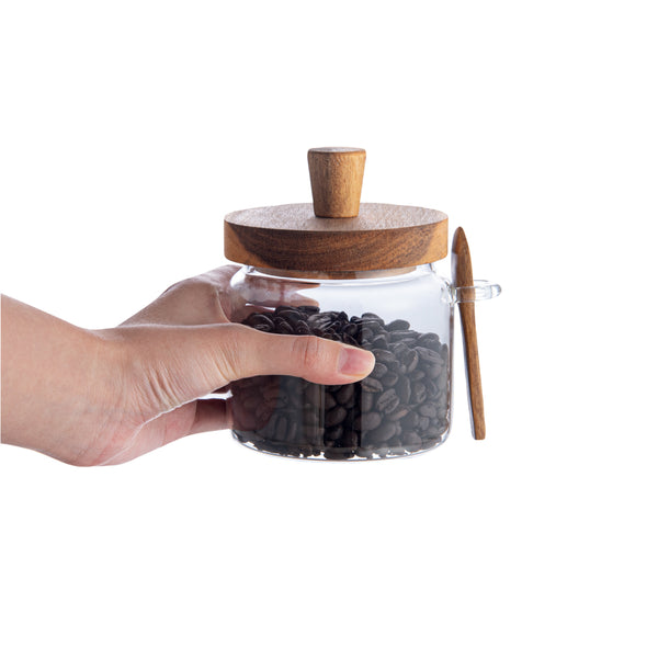 17 OZ GLASS STORAGE JAR - WITH ACACIA LID AND SPOON