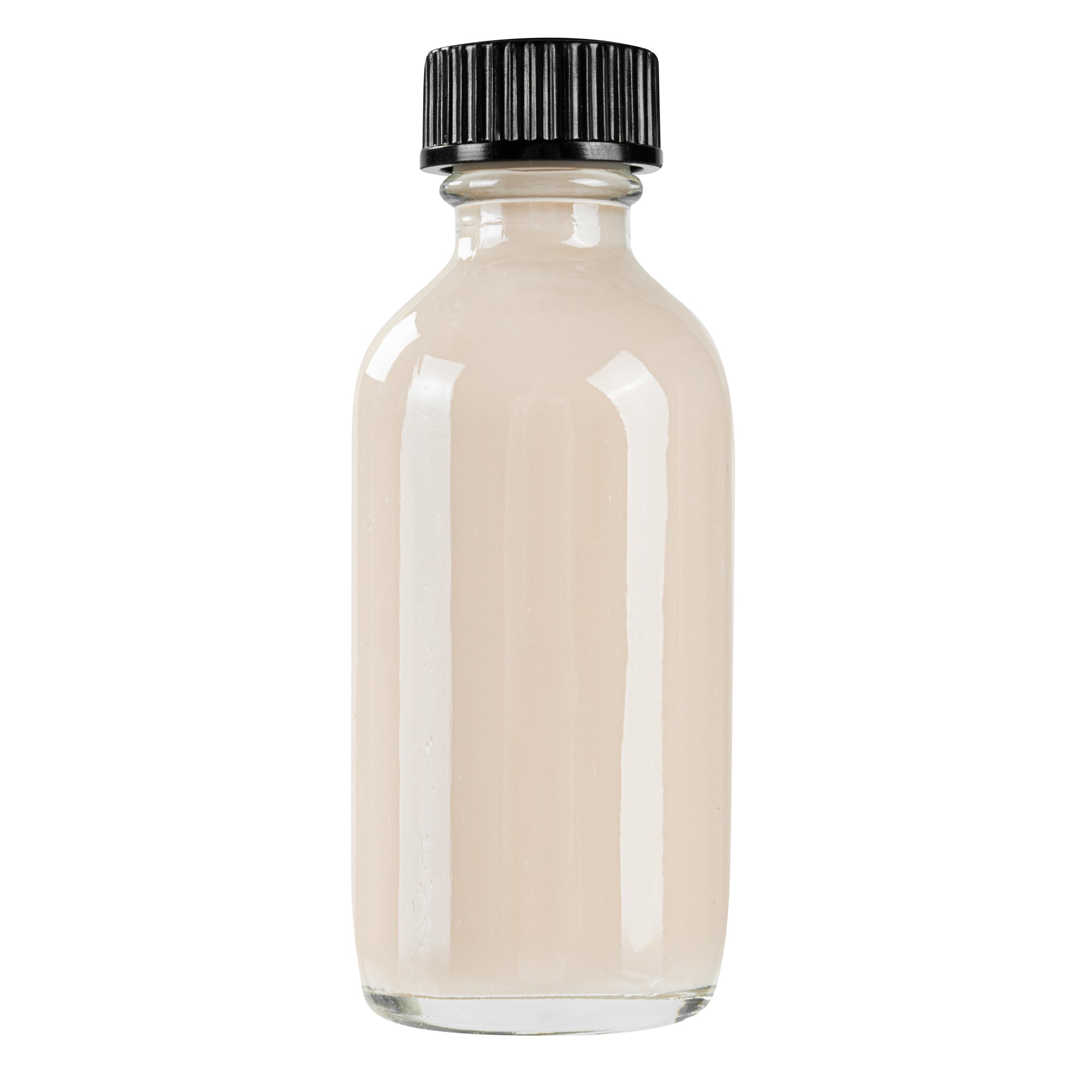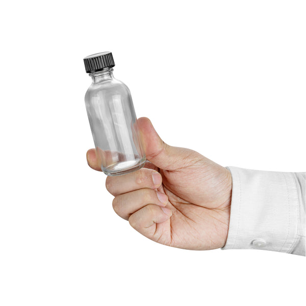 2 OZ BOSTON ROUND CLEAR GLASS BOTTLE - WITH BLACK PHENOLIC CAP