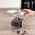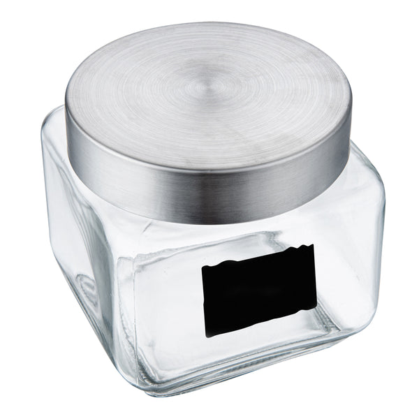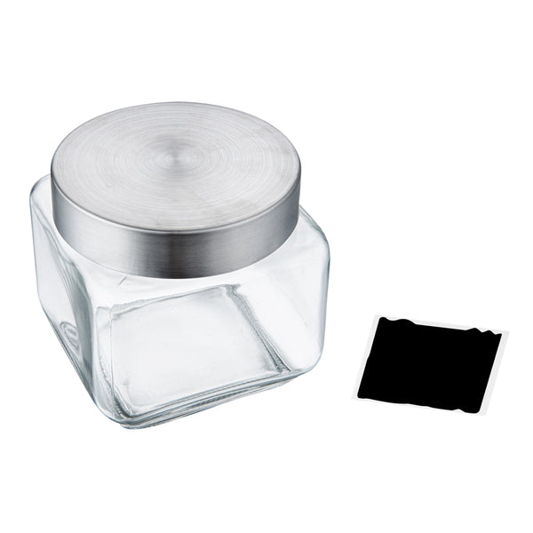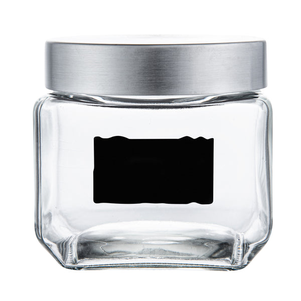 Keep your supply and storage room organized with our Vetri 20-Ounce Glass Storage Jar. This glass food storage container is constructed with high quality glass to hold hot or cold ingredients. Equipped with an airtight seal, this glass food container maintains freshness of contents. This glass container comes with a chalkboard label to avoid any potential mixups with other jars. For a smooth cleaning process, this glass cookie jar is dishwashable. Featuring a clear glass finish, this glass storage jar allows for effortless viewing access of treats for guests. This glass food container has a 20-ounce capacity and measures 3.5 inches in length by 3.5 inches in width by 4.25 inches in height, great for storing, kitchens, or laundry rooms. Sold in a 1 count box.