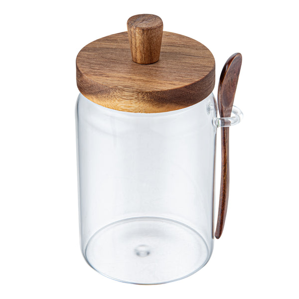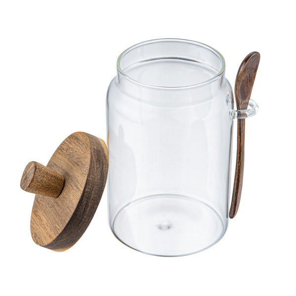 29 OZ GLASS STORAGE JAR - WITH ACACIA LID AND SPOON