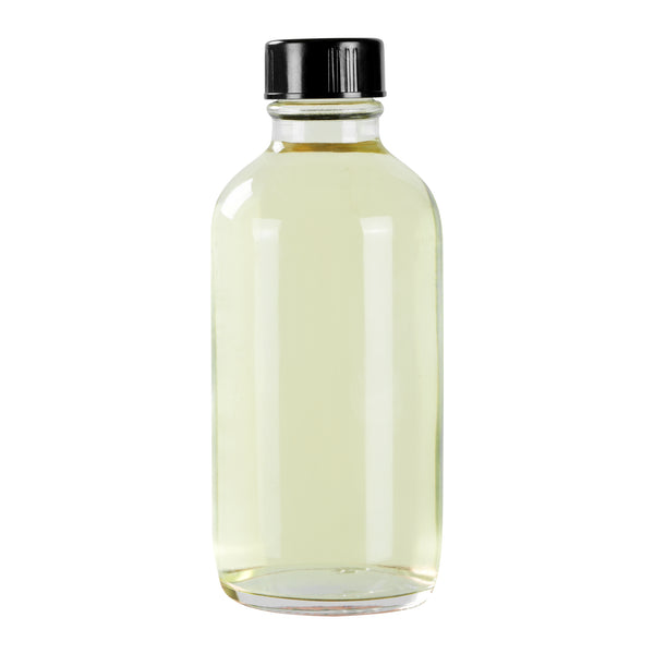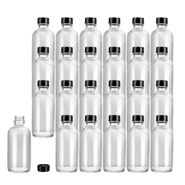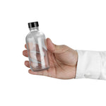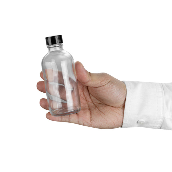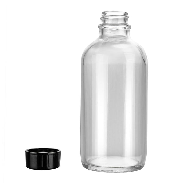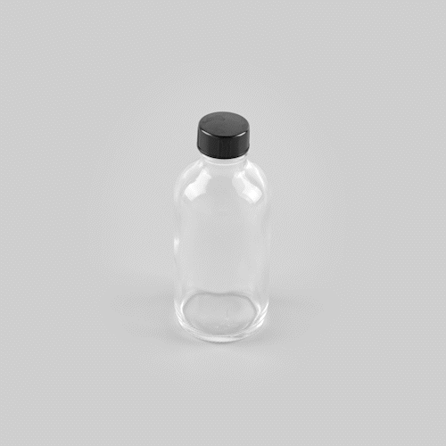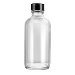 4 OZ BOSTON ROUND CLEAR GLASS BOTTLE - WITH BLACK PHENOLIC CAP