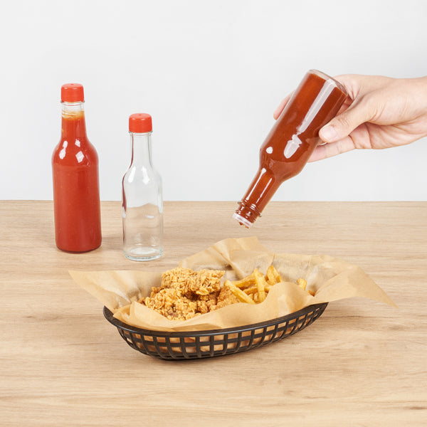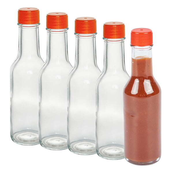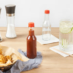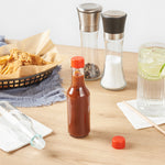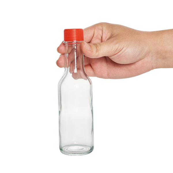 Enhance your food presentation with our Vetri 5-ounce Glass Woozy Bottles, perfect for showcasing your delicious sauces and dressings. These glass sauce bottles come with red caps that form a secure seal, ensuring your contents remain protected. The simple, classic design of these small glass bottles will complement any sauce or dressing they contain. Featuring a traditional long neck and wide base, these hot sauce bottles are perfect for pouring and transporting their contents. The crystal-clear finish of these glass bottles provides excellent visibility for display purposes. Crafted from durable lead-free soda lime glass, these sauce bottles withstand regular use while maintaining their pristine appearance. These clear glass bottles are dishwasher-safe and enable easy cleanup. Each bottle has a total capacity of 5 ounces and measures 1.85 inches in length by 1.85 inches in width by 6.65 inches in height. Sold in a 10 count box.