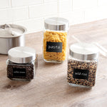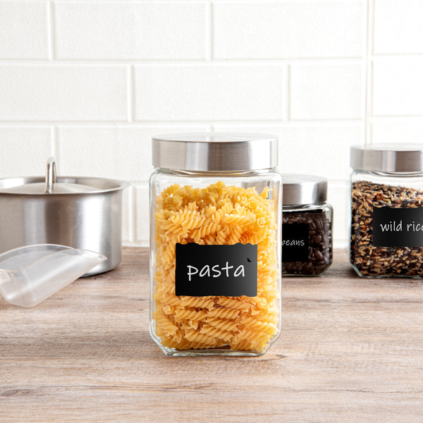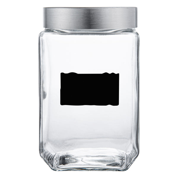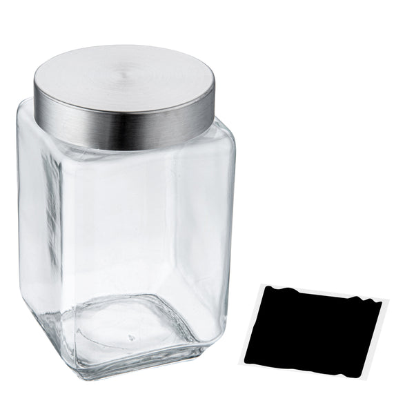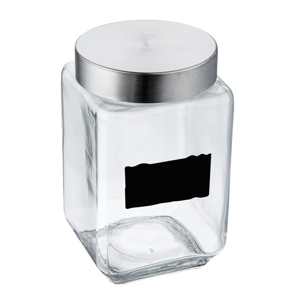 Elevate your storage supplies using our Vetri 58-Ounce Glass Storage Jar. This glass food storage container is designed with high-quality glass to hold various hot or cold ingredients. To maintain the freshness of your contents, this glass container with lid has an airtight seal. For quick reach when looking for treats, this glass food container comes with a chalkboard label to avoid any mixups. For easy cleanup, this glass cookie jar is dishwashable. Featuring a clear glass finish, this storage jar with lid allows a transparent view of what's inside and goes with any kitchen decor. This glass storage jar with lid has a 58-ounce capacity and measures 3.5 inches in length by 3.5 inches in width by 7.25 inches in height. Sold in a 1 count box.