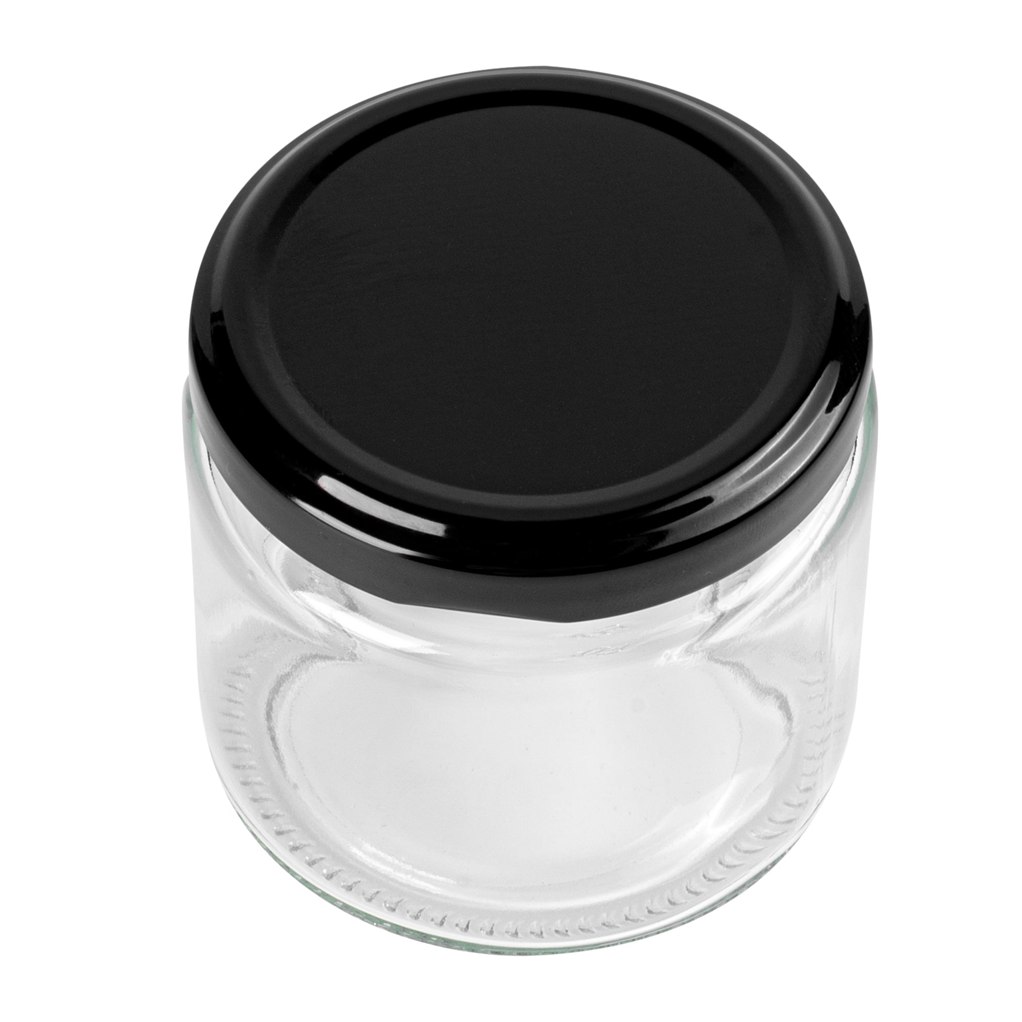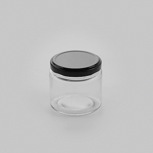 6 OZ CLEAR GLASS JAR - WITH BLACK METAL LID
