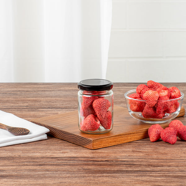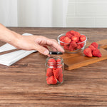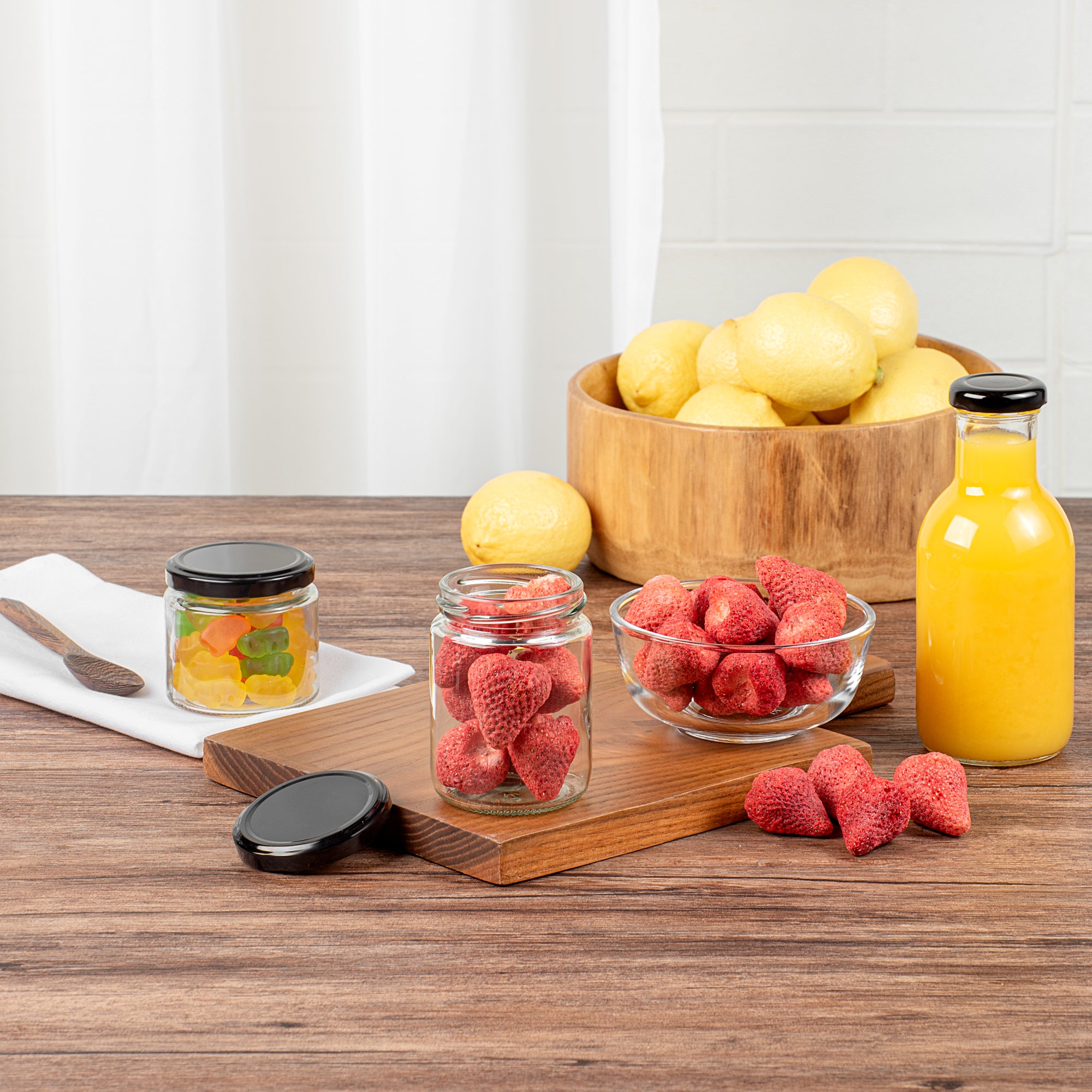 Preserve the quality of your culinary creations with our versatile storage solution. The Vetri Airtight Glass Jar offers an airtight twist-lock lid that keeps foods fresh and prevents leaks, making it an ideal 8 oz glass jar for both restaurant kitchens and retail food packaging. Its leak-proof design ensures the safe transport of condiments, while the construction supports safe microwave and freezer use, enhancing operational efficiency. With a sleek black metal lid and compact dimensions of 2.76 inches by 2.76 inches by 3.74 inches, this jam jar is perfect for elegantly presenting homemade favors or holiday gifts. The durable glass construction not only provides a sustainable and elegant presentation but also withstands temperature variations, accommodating both hot and cold foods. Enhance your foodservice operations with this elegant lug lid jar that is microwave, freezer, and dishwasher safe. Each order includes 10 Vetri Airtight Glass Jars.