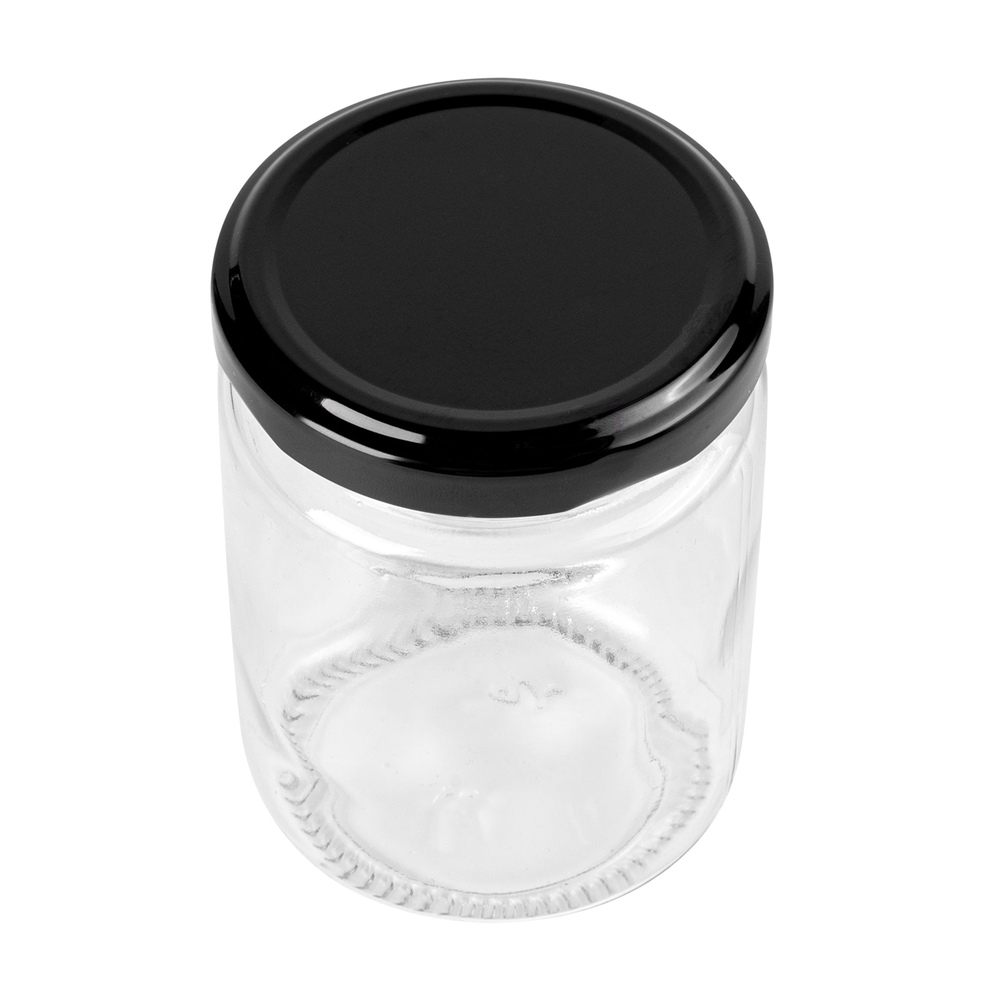 8 OZ CLEAR GLASS JAR - WITH BLACK METAL LID