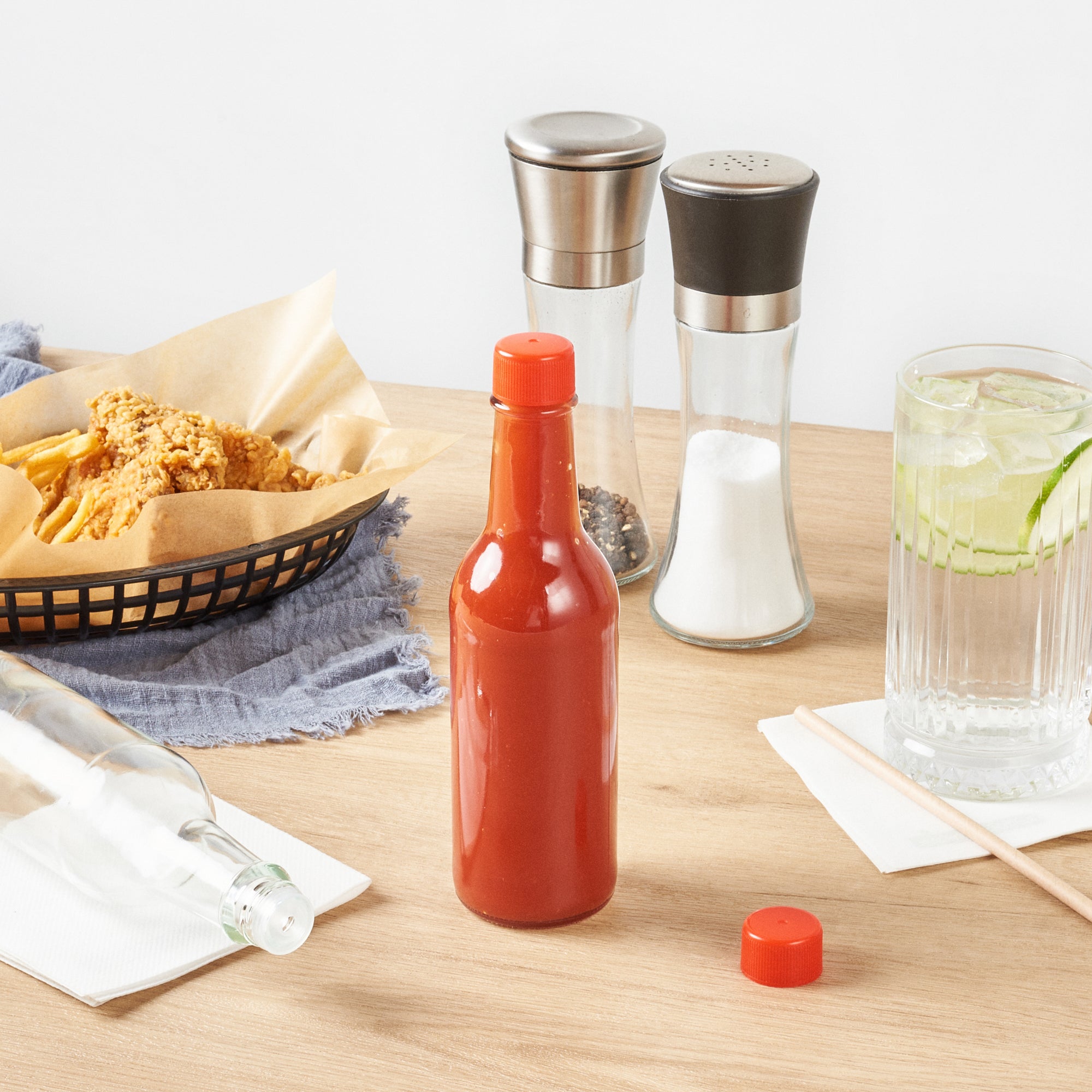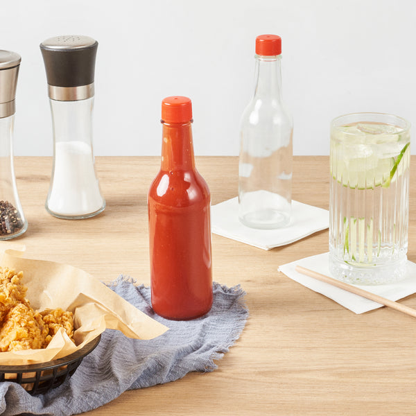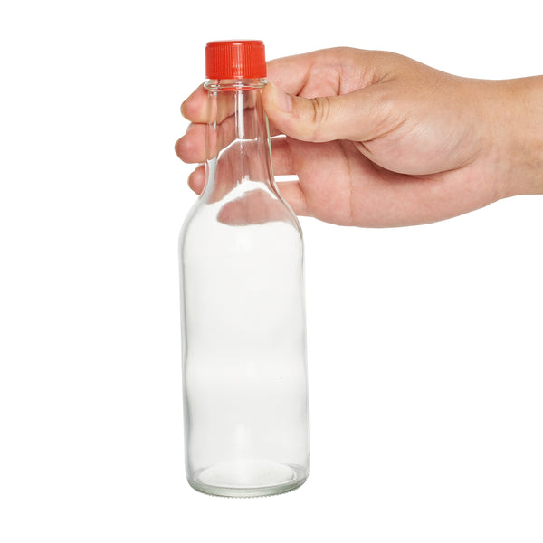 Enhance your culinary creations with our Vetri 9-ounce Glass Woozy Bottles, perfect for showcasing and preserving your finest sauces. These glass sauce bottles come with red caps that form a secure seal, ensuring your contents remain protected and fresh. Featuring a simple, classic design, these hot sauce bottles will beautifully complement the sauces or dressings they contain. The traditional long neck and wide base of these glass bottles make them ideal for easy pouring and transporting. With a crystal-clear finish, these small glass bottles provide excellent visibility for an attractive display. Crafted from durable, lead-free soda lime glass, these sauce bottles withstand regular use while maintaining their pristine appearance. These clear glass bottles are dishwasher-safe and facilitate easy cleanup. Measuring 2.21 inches in length, 2.21 inches in width, and 7.84 inches in height, these bottles have a total capacity of 9 ounces to meet your storage needs. Sold in a 10 count box.