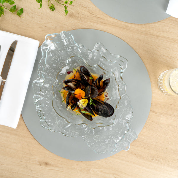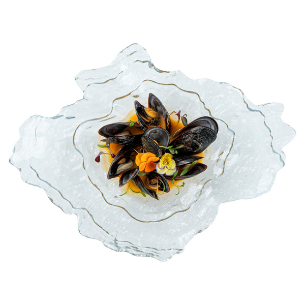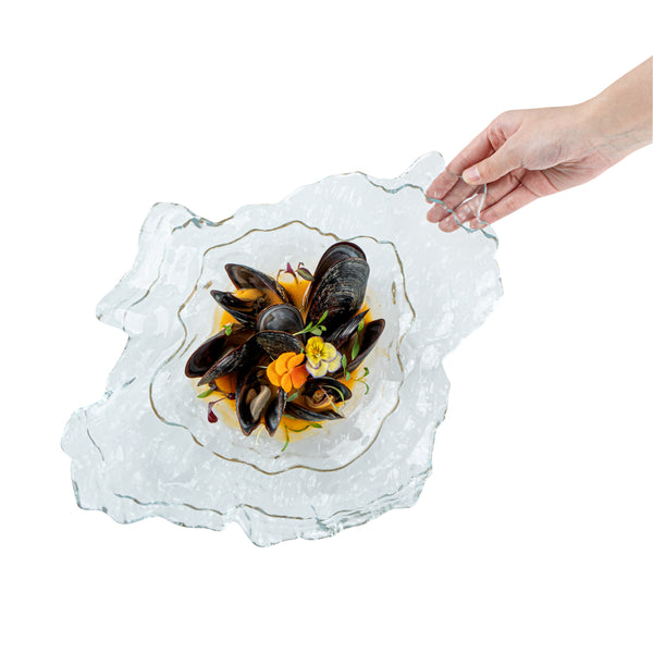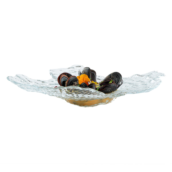 ABSTRACT CLEAR GLASS SEASHELL SERVING PLATE