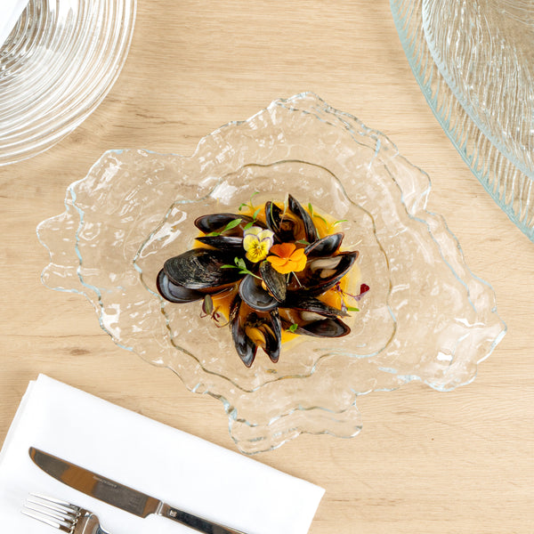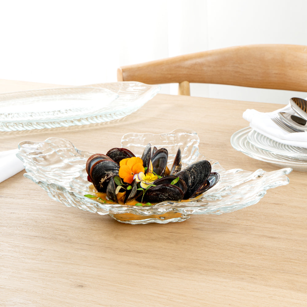 ABSTRACT CLEAR GLASS SEASHELL SERVING PLATE