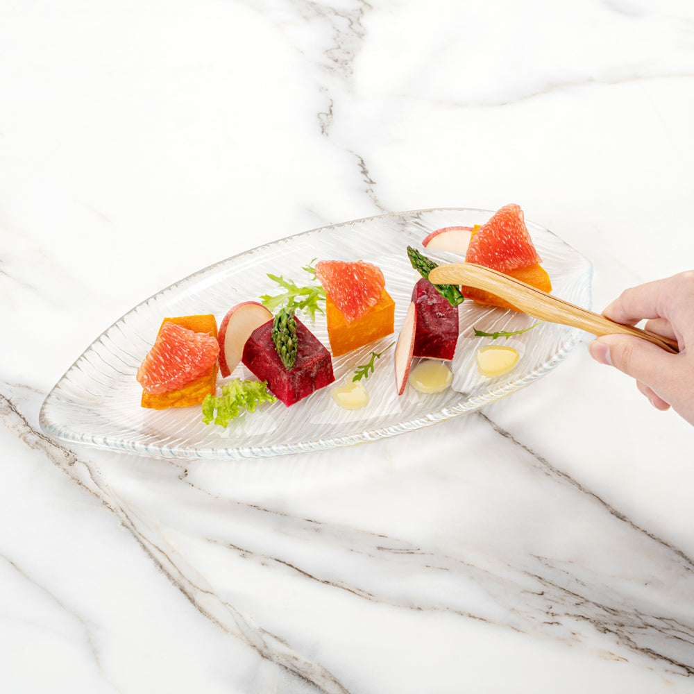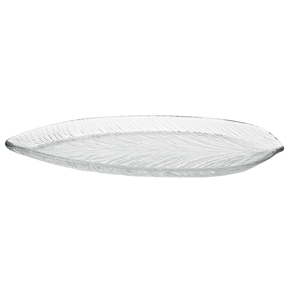 CLEAR GLASS LEAF SERVING PLATE