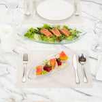 Add a cool touch to your buffet displays with our Vetri Clear Glass Leaf Serving Plate. This antique glass platter is made from lead-free soda-lime glass for durability and long-lasting performance while being lightweight. With a textured finish, this glass serving dish elevates the presentation of any menu item. For added flair, the leaf design offers a distinctive look to this crystal serving dish to further accentuate the display. With slightly raised edges, this decorative glass platter prevents food from spilling. This food-grade glass serving platter is hot and cold friendly, allowing you to serve various foods. Withstanding temperatures up to 140F, this reusable serving glass plate is dishwasher-safe. Measuring 11.75 inches long by 5.5 inches wide, this clear glass plate elevates the plating experience in your food establishment. Shipped in a 1 count box.