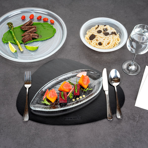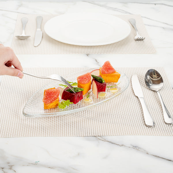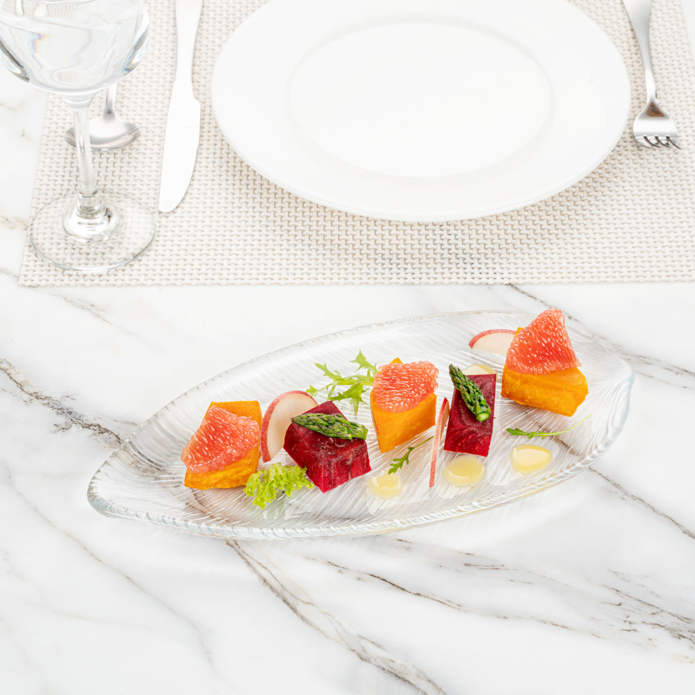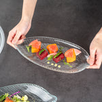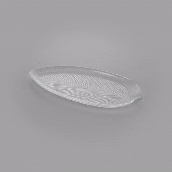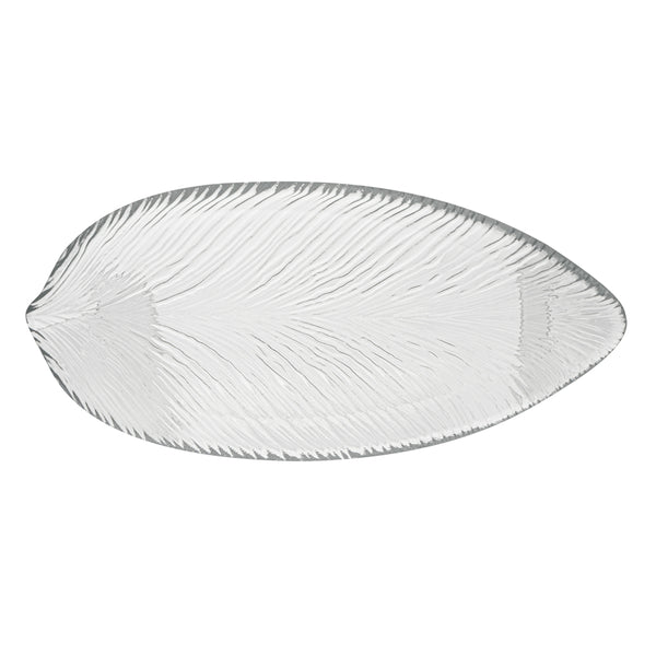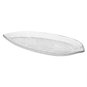 CLEAR GLASS LEAF SERVING PLATE
