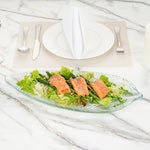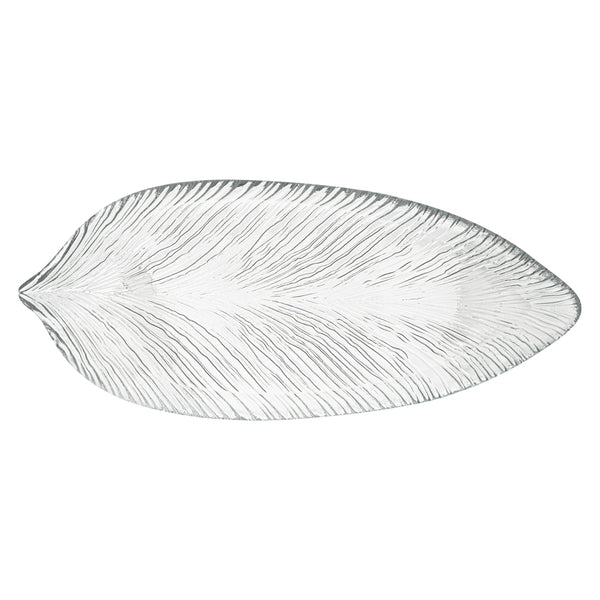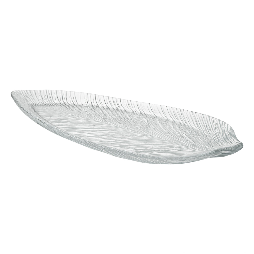 Present your food like a pro with our Vetri Clear Glass Leaf Serving Plates. Designed from premium soda-lime glass, these leaf serving plates are durable for rigorous use. Handmade with precision to detail, these glass serving plates feature a leaf design to give an aesthetic appeal to your food presentation. These vintage glass serving plates withstand temperatures up to 140F and are hot and cold friendly, allowing you to serve all kinds of food. Made from lead-free glass, these antique glass plates won't leach any undesirable substances into your food. To make the cleaning process fast and simple, these clear serving glass plates are dishwasher-safe. Featuring raised edges, these clear glass plates secure food from accidentally spilling out. Measuring 17 inches in length by 7.75 inches in width by 1.25 in height, these leaf-patterned glass serving dishes are great for presenting all kinds of food. Shipped in a 6 count box.