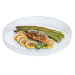 Make your guests go in awe with your food presentations by using our Vetri Round White Glass Alabaster Plates. With a durable soda-lime glass construction, these round glass plates are made for rigorous use at your establishment. Suitable for serving both hot and cold foods, these glass serving plates withstand temperatures up to 140F, making them ideal for presenting cold salads and hot brownies alike. These antique glass plates are made from lead-free glass and do not spread unwanted substances into food. These clear serving plates are dishwasher-safe for simple cleaning. With its ink swirls, these white alabaster dinnerware will turn heads at your next event. Measuring 12.99 inches in diameter by 1.37 inches in height, these serving glass plates are perfect for serving pancakes, sandwiches, or lasagna to show off their layers easily. Shipped in a 6 count box.