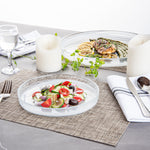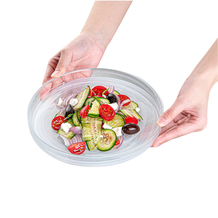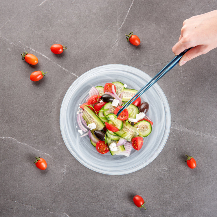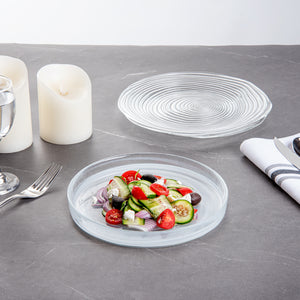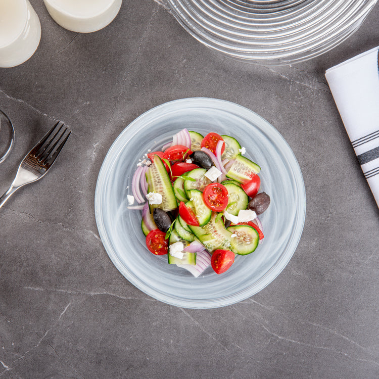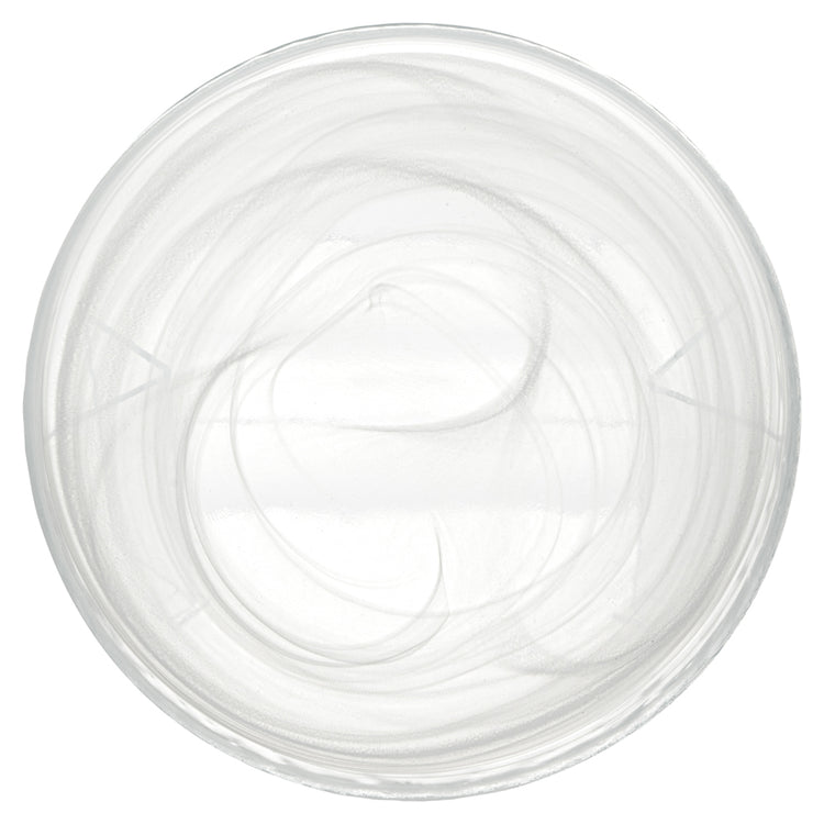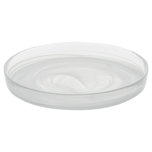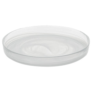 Add a fun touch to your food presentation with our Vetri Round White Glass Alabaster Plate. Made from premium soda-lime glass, this glass serving plate is durable and can hold hefty foods effortlessly. Withstanding up to 140F, this glass serving platter allows you to serve food hot and cold. For a quick and simple cleanup, you can also place it in the dishwasher. With a lead-free composition, this antique glass plate will not leach out any unpleasant substances. This glass serving plate secures food from accidental spills or runoffs with slightly raised edges. The swirls of color in this white alabaster dinnerware will stand out at your next event. Measuring 8.25 inches in diameter, this vintage glass plate is perfect for serving all kinds of food. Shipped in a 1 count box.