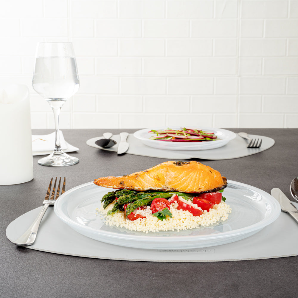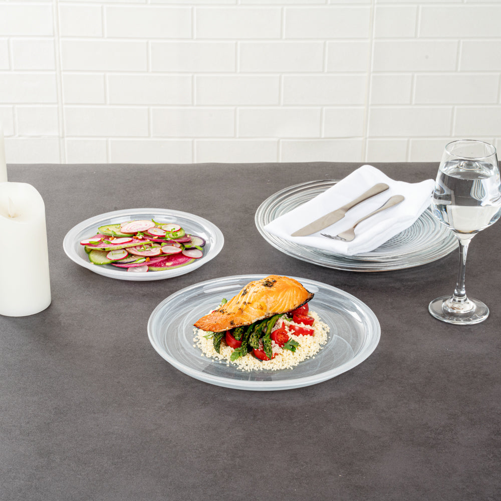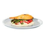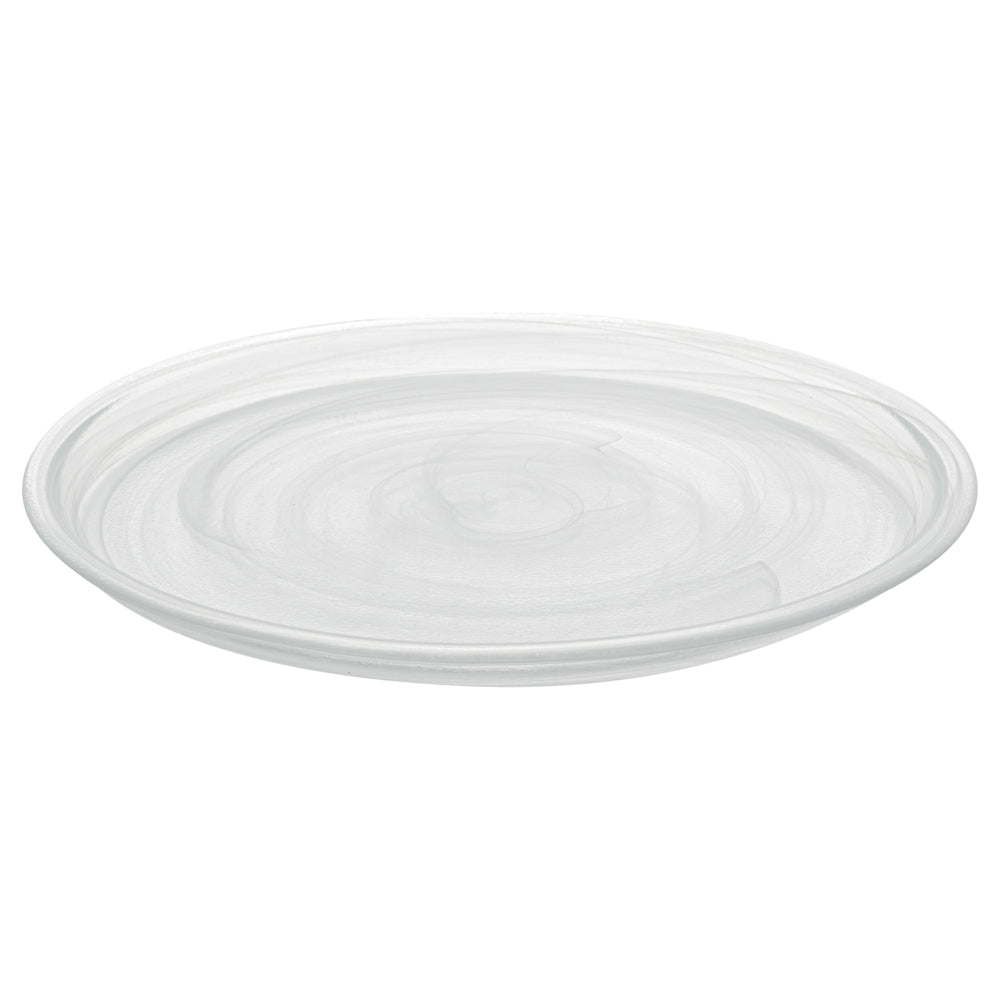 Plate foods like a pro with our Vetri Round White Glass Solar Plate. The premium soda-lime glass used in this glass serving plate makes it sturdy for holding heavy foods. With this glass serving plate, you can serve hot or cold foods without worrying about cracking. This antique glass plate is made of lead-free materials and doesn't leach any undesirable substances into foods. Plus, this fancy plate withstands up to 140F, allowing you to toss them in the dishwasher. Featuring raised edges, this glass plate prevents food from spilling. The translucent white finish of this serving glass plate gives a classic touch to your food presentation. Measuring 11 inches in diameter, this white glass solar plate is perfect for pasta, salads, and brownies, Shipped in a 1 count box.