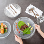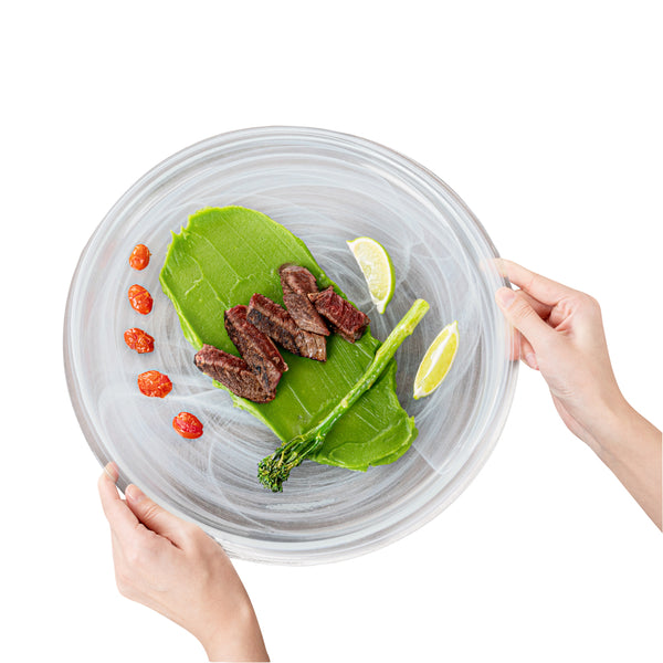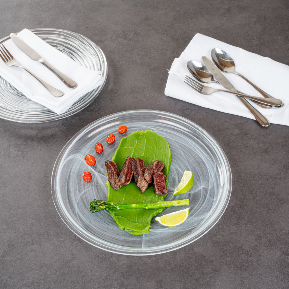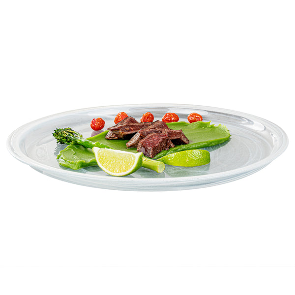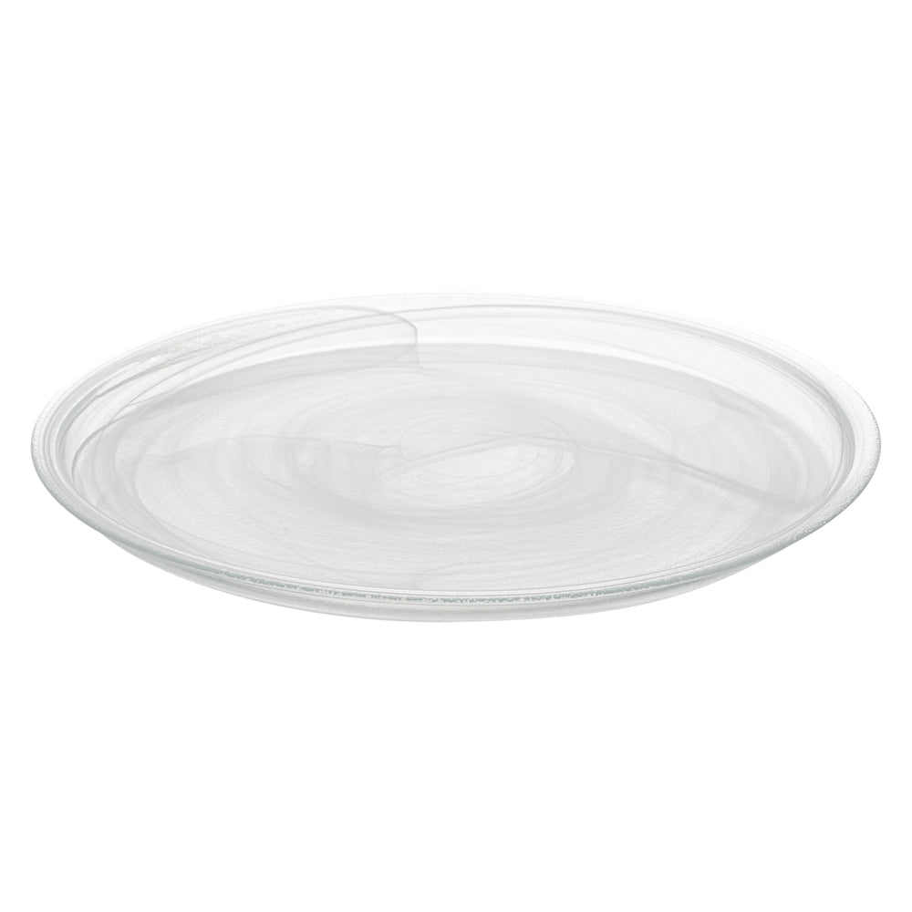 Exquisitely present your dishes by serving them in our Vetri Round White Glass Solar Plate. This serving glass plate is made of premium soda-lime glass without lead and thus does not react with your food. Conveniently use this white decorative glass platter to serve hot or cold foods, as it withstands up to 140F and are suitable for both. To speed up the cleaning process and save time, this vintage glass serving platter is dishwashable. Styled with a translucent white finish, this round solar glass serving plate adds a ravishing beauty to your table settings and enhances food presentation. Measuring 13 inches in diameter, this antique glass platter is a great addition to your tableware. Shipped in a 1 count box.