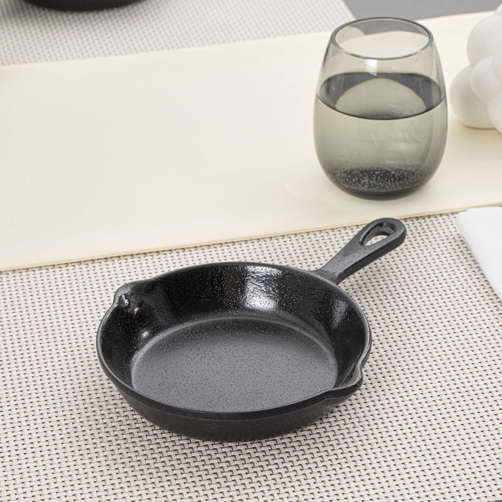 12 OZ BLACK MELAMINE SERVING DISH WITH HANDLE - FAUX CAST IRON