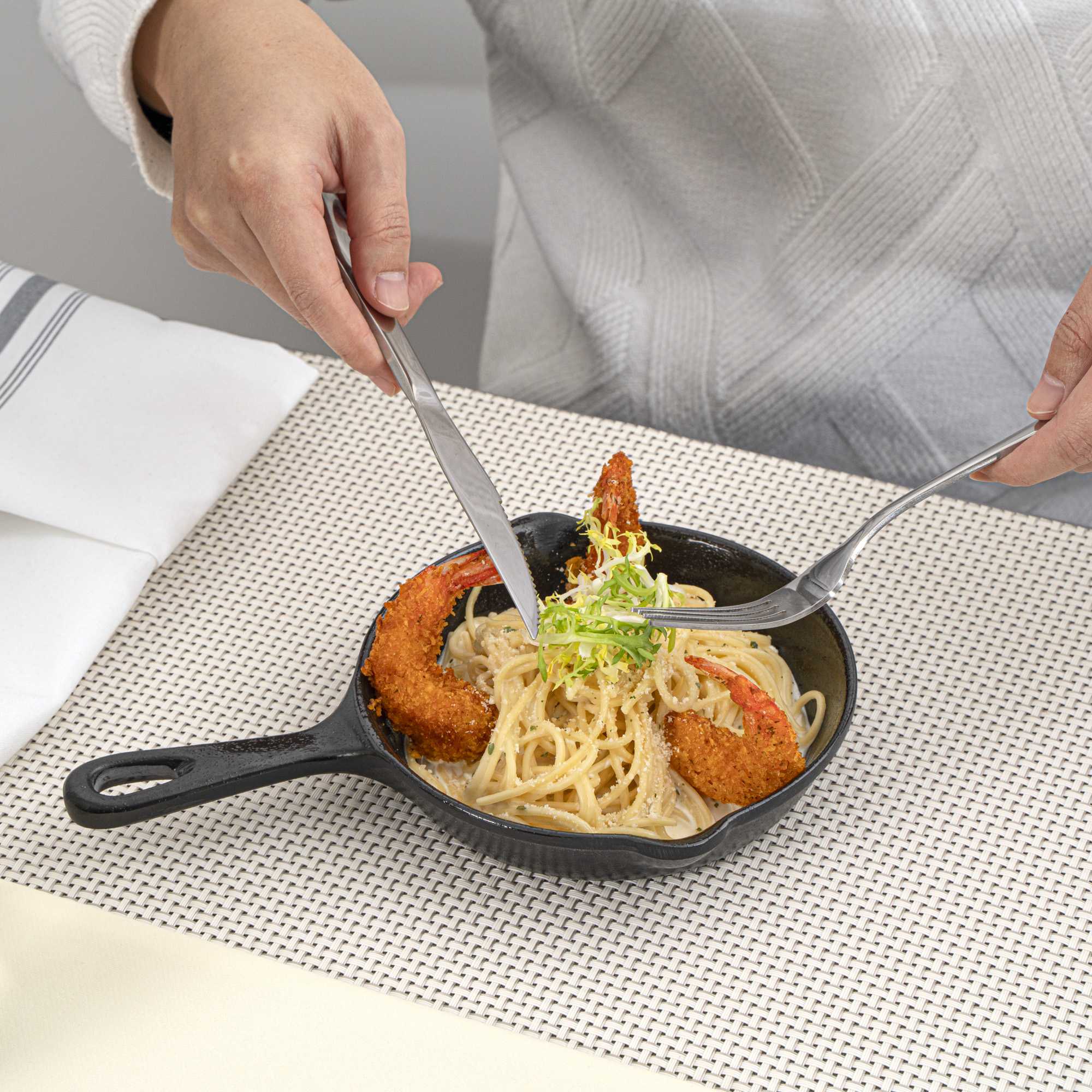 - Built-in handle provides a secure grip to comfortably while carrying multiple food items