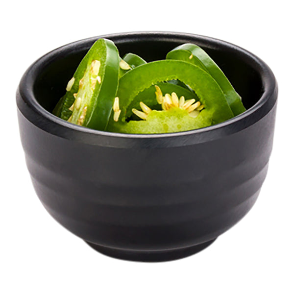 Give your tasty condiments a stylish makeover with our Voga 2-ounce Round Black Melamine Condiment Cups. Featuring a chic matte black finish, these plastic condiment cups add a modern touch to any food presentation at your buffet, restaurant, catering event, and more. With a premium melamine construction, these BPA-free plastic condiment containers do not break or crack easily. These melamine condiment cups are dishwasher-safe and built for long-lasting use. Use these versatile condiment sauce cups to beautifully present a side of sliced jalapenos along with a delicious dish served at your restaurant or to stylishly serve a side of eel sauce along with fresh sushi rolls at your Japanese buffet. These 2-ounce melamine condiment dishes measure 2.5 inches long by 2.5 inches wide by 1.5 inches tall. Sold in a 10 count box.