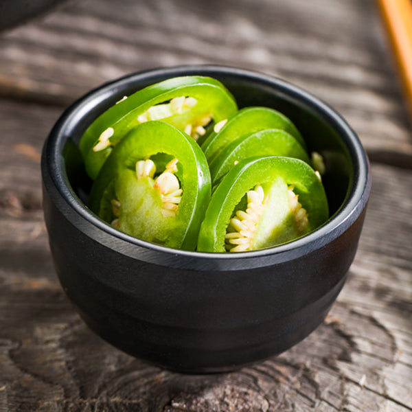 - Elegant black finish effortlessly enhances the food's vibrant colors