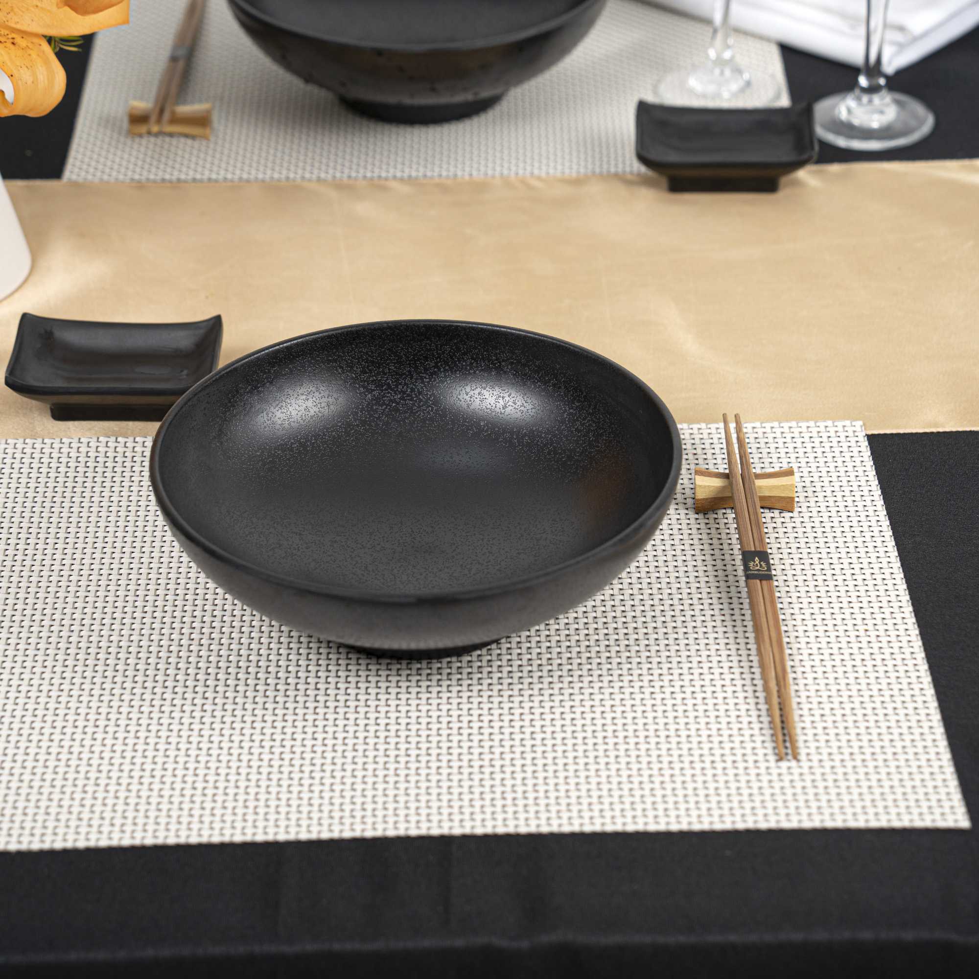27 OZ BLACK MELAMINE LARGE BOWL - JAPONAIS, FAUX STONE, SPECKLED