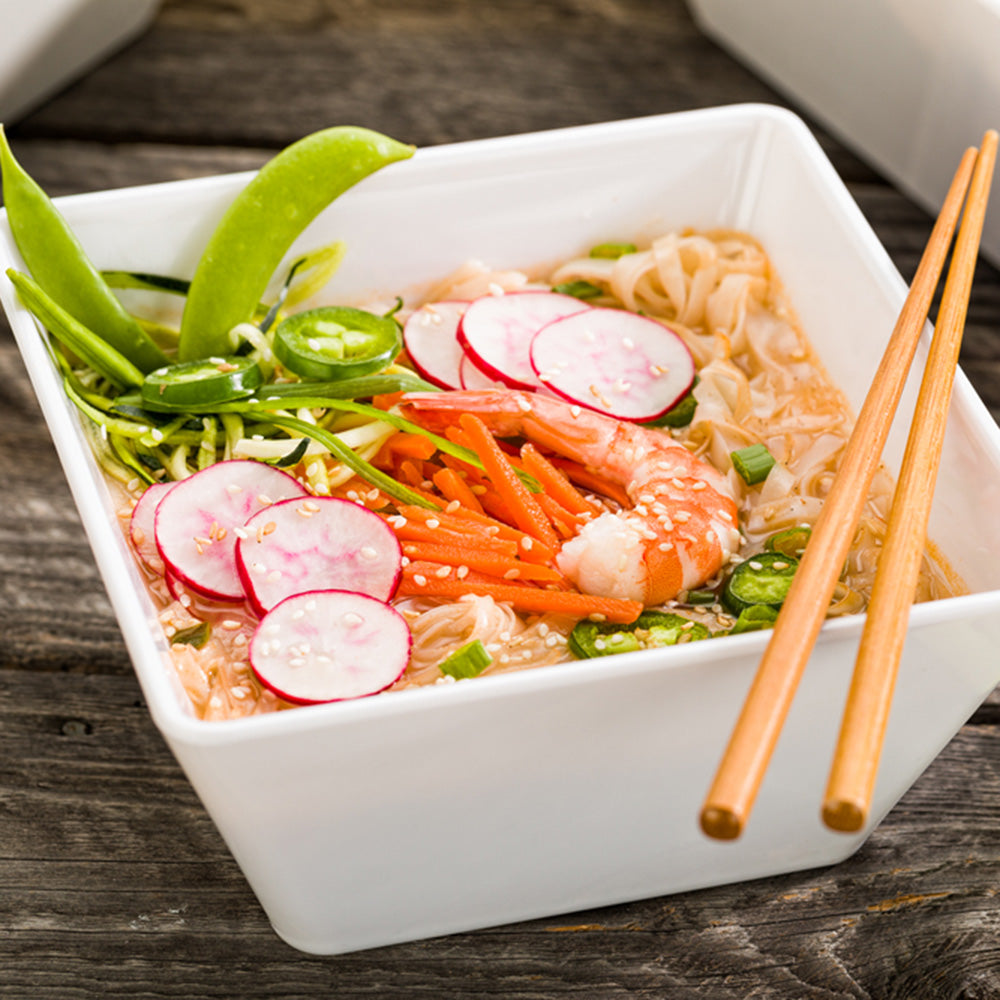 Create a mouthwatering display of snacks with our Voga 45-ounce Square White Melamine Serving Bowls. Designed with a square shape, these white serving bowls expertly contain your potato chips, popcorn, pastas, salads, and more. Featuring an elegant white finish, these square serving bowls draw all eyes to your delicious fare and will have customers come back for more. Crafted from BPA-free melamine, these white pasta bowls are shatter-resistant for constant use at your catering service, restaurant, or buffet. These white melamine bowls are dishwasher-safe to shorten your cleaning process after a busy shift. Each bowl of this melamine bowl set measures 7 inches long by 7 inches wide by 3.25 inches tall and holds up to 45 ounces of food. Sold in a 10 count box.