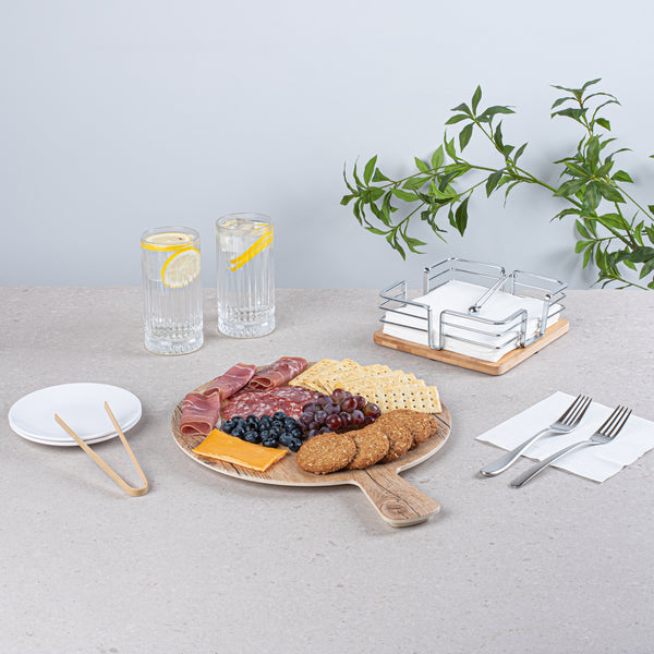- Faux wood look provides a warm and rustic touch to any food presentation