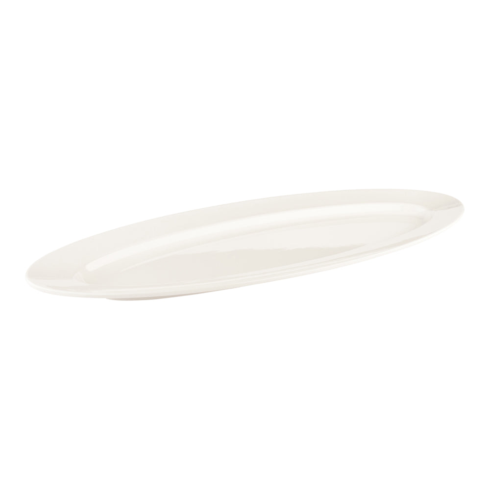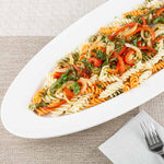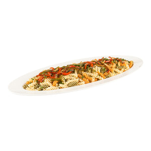 Create an eye-catching food presentation with our Voga Oval White Melamine Serving Plates. Crafted from high-quality melamine, these serving plates are durable and ideal for serving hot or cold food items. Featuring a minimalist oval design, these pasta plates complements the look of a wide range of culinary creations. The elevated, yet wide rim of these dinner plates minimizes the risk of accidental spills while facilitating easy handling. These serving dishes can be used in the top rack of a dishwasher for an easy after-service cleanup. With a glossy white finish, these melamine platters beautifully display savory Caprese skewers at a catered luncheon, or to stylishly serve lemon crusted chicken family-style at your restaurant. These white plates measure 23 inches in length by 9 inches in width by 1.75 inches in height. Sold in a 2 count box.