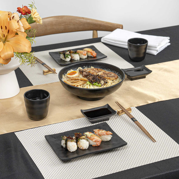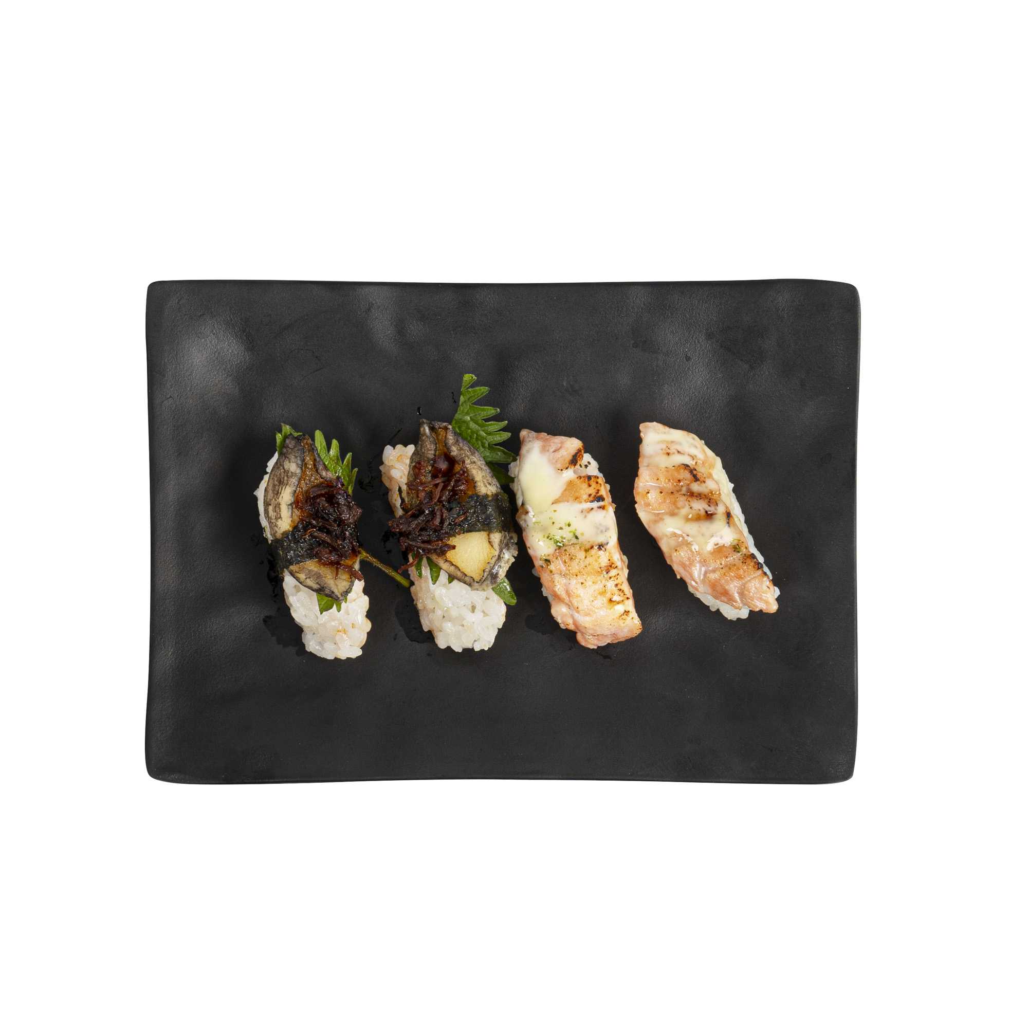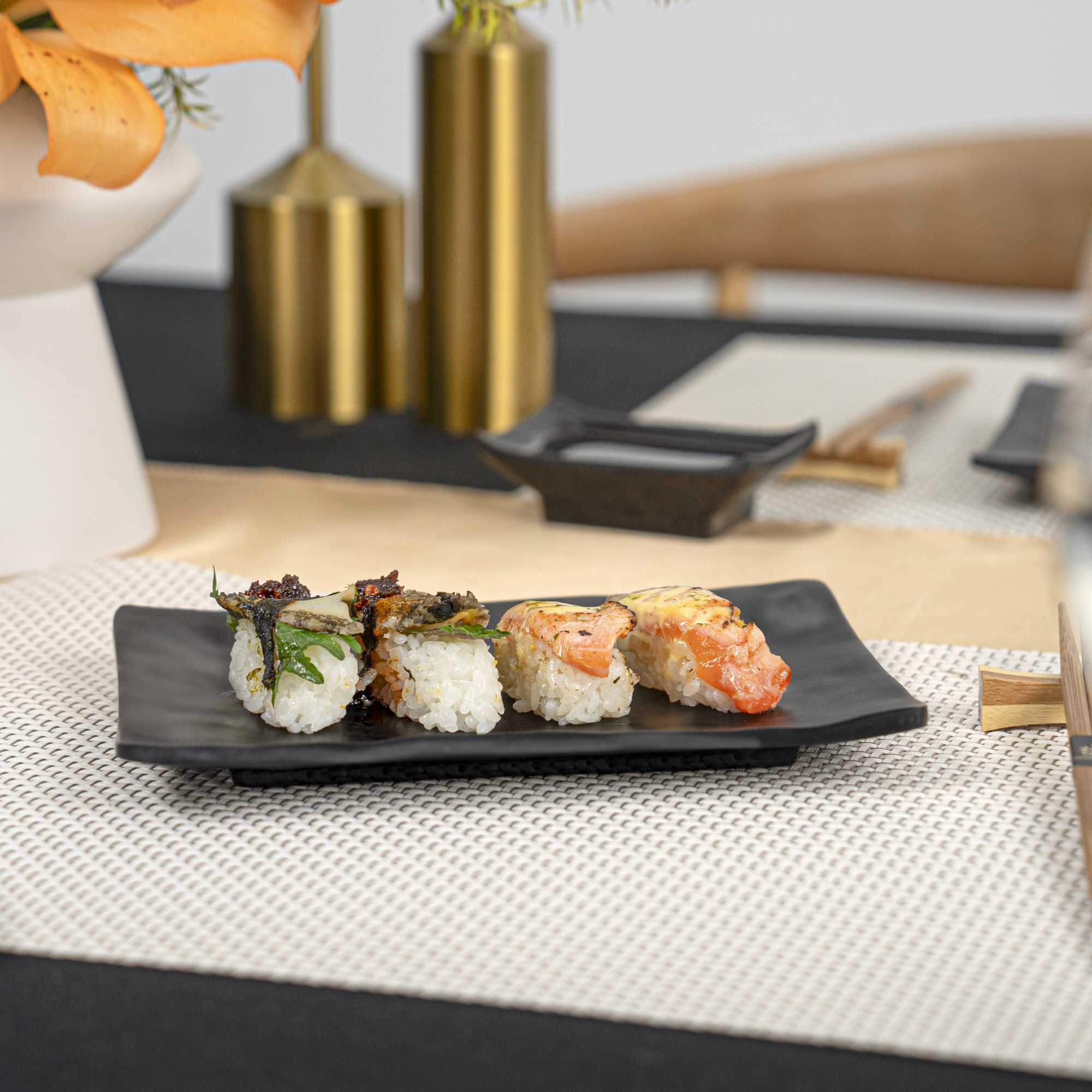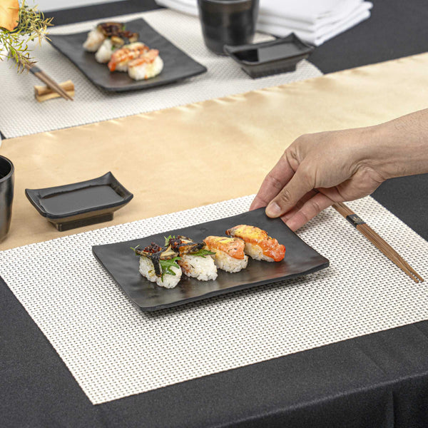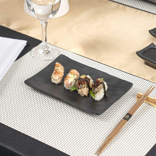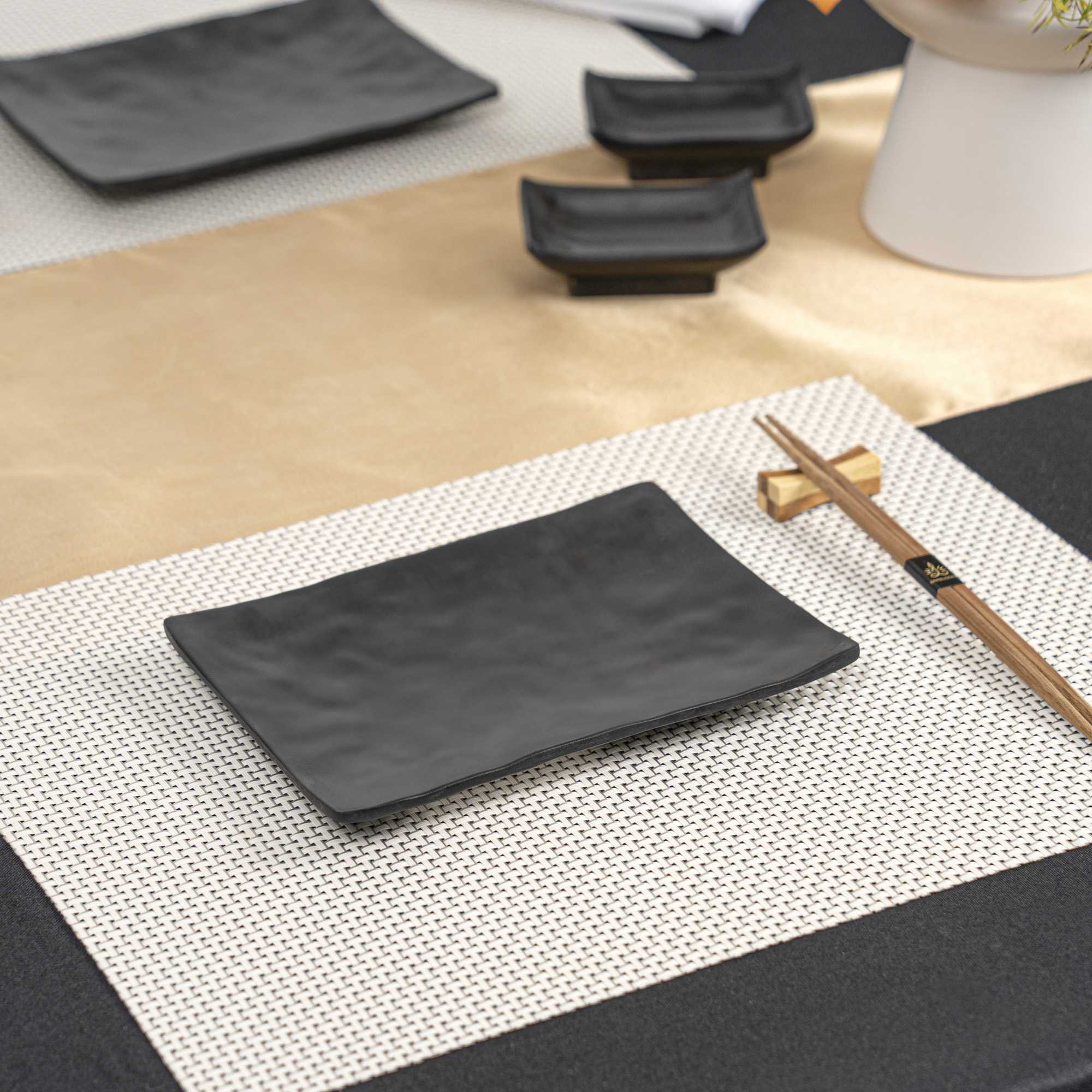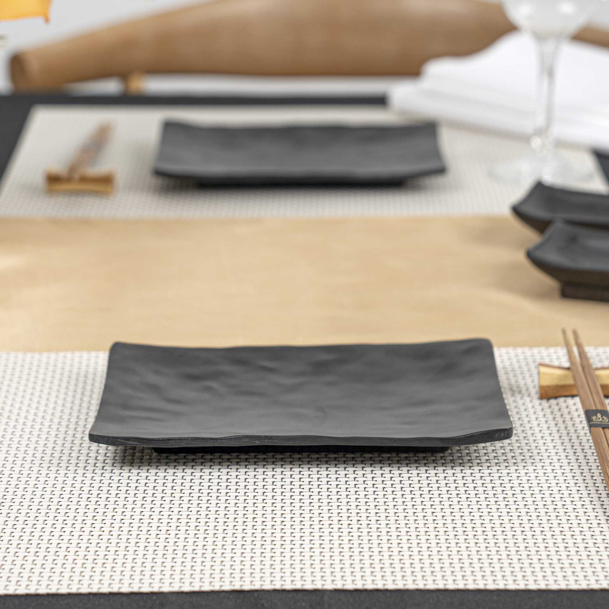 RECTANGLE BLACK MELAMINE SMALL PLATE - JAPONAIS, FAUX SLATE