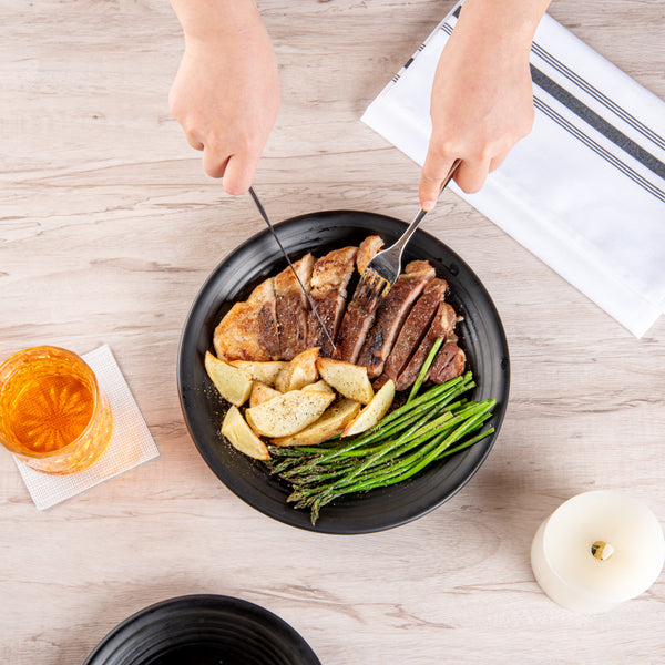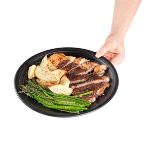 - Matte black finish effortlessly enhances the food's vibrant colors