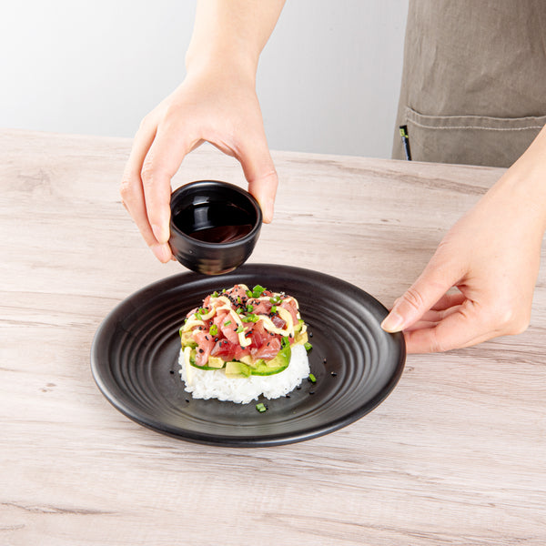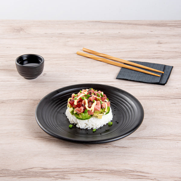 ROUND BLACK MELAMINE SMALL PLATE - JAPONAIS, BLACK STONE
