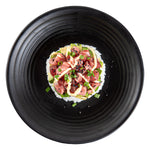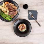 - Matte black finish effortlessly enhances the food's vibrant colors