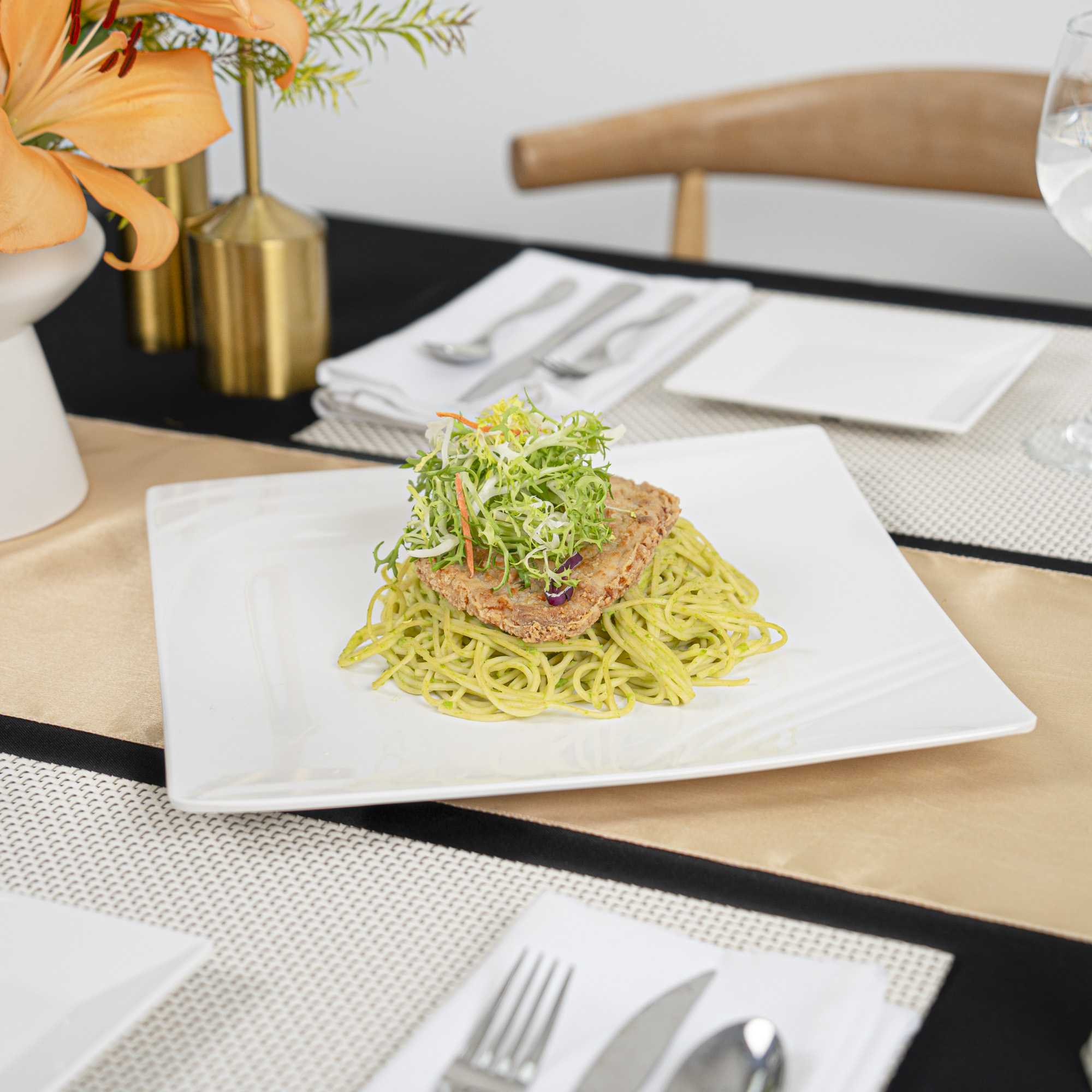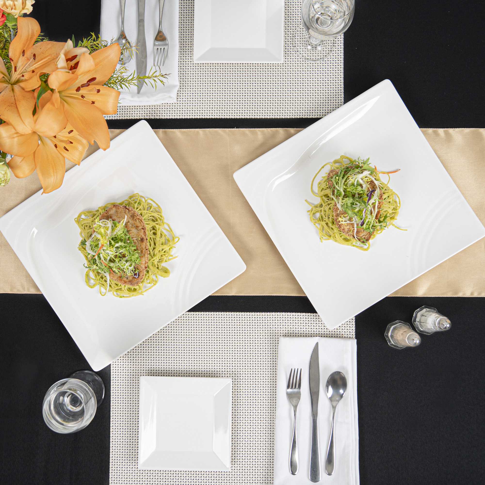 - Glossy white finish effortlessly enhances the food's vibrant colors