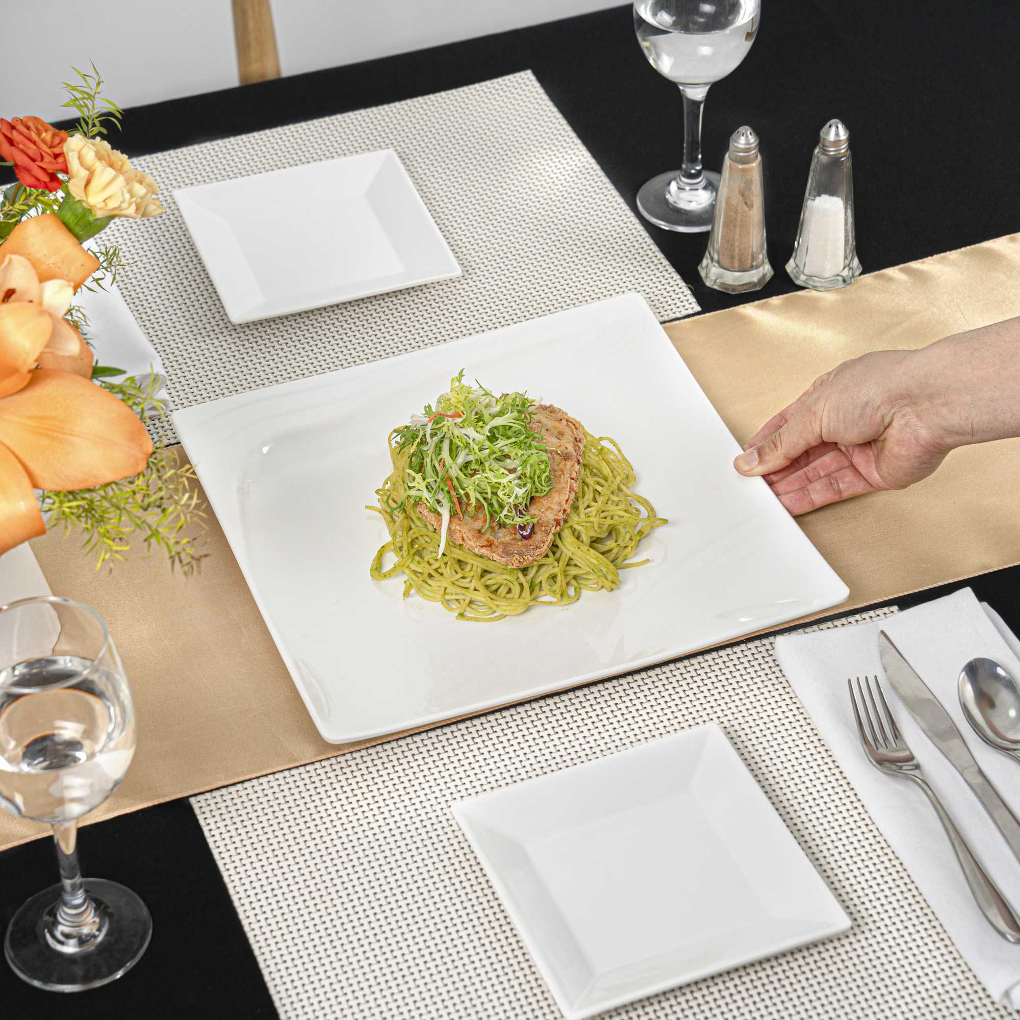 SQUARE WHITE MELAMINE LARGE PLATE - FLARE