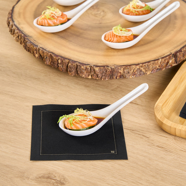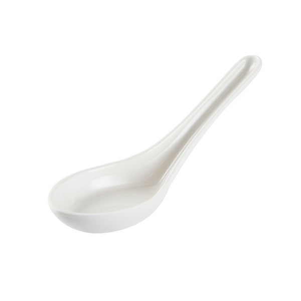 Present bite-sized fares with our Voga White Melamine Asian Soup Spoons. Crafted from high-quality melamine, these Asian spoons are durable and ideal for serving various hot or cold food items. Featuring a flat, wide bowl, these Chinese spoons are great for scooping up big bites of broth, noodles, sauce, and other soupy delicacies. These Japanese soup spoons have a broad base that is designed to rest flatly on tabletops or serving platters. The ergonomic handle of these white spoons remains elevated for quick and mess-free service. These soup spoons have an elegant white finish that goes well all types of serving ware and tablescapes. For a quick cleanup, these melamine spoons can be used in the top rack of a dishwasher. These Asian soup spoons measures 4.75 inches long by 1.5 inches wide by 1.5 inches tall. Sold in a 10 count box.