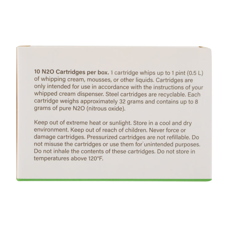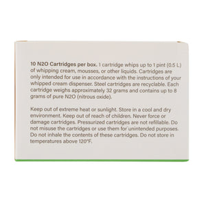 - 8 Gram N2O cartridge produces up to 1 pint of whipped creams or luscious foams in no time
