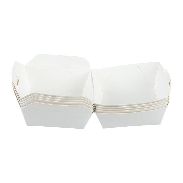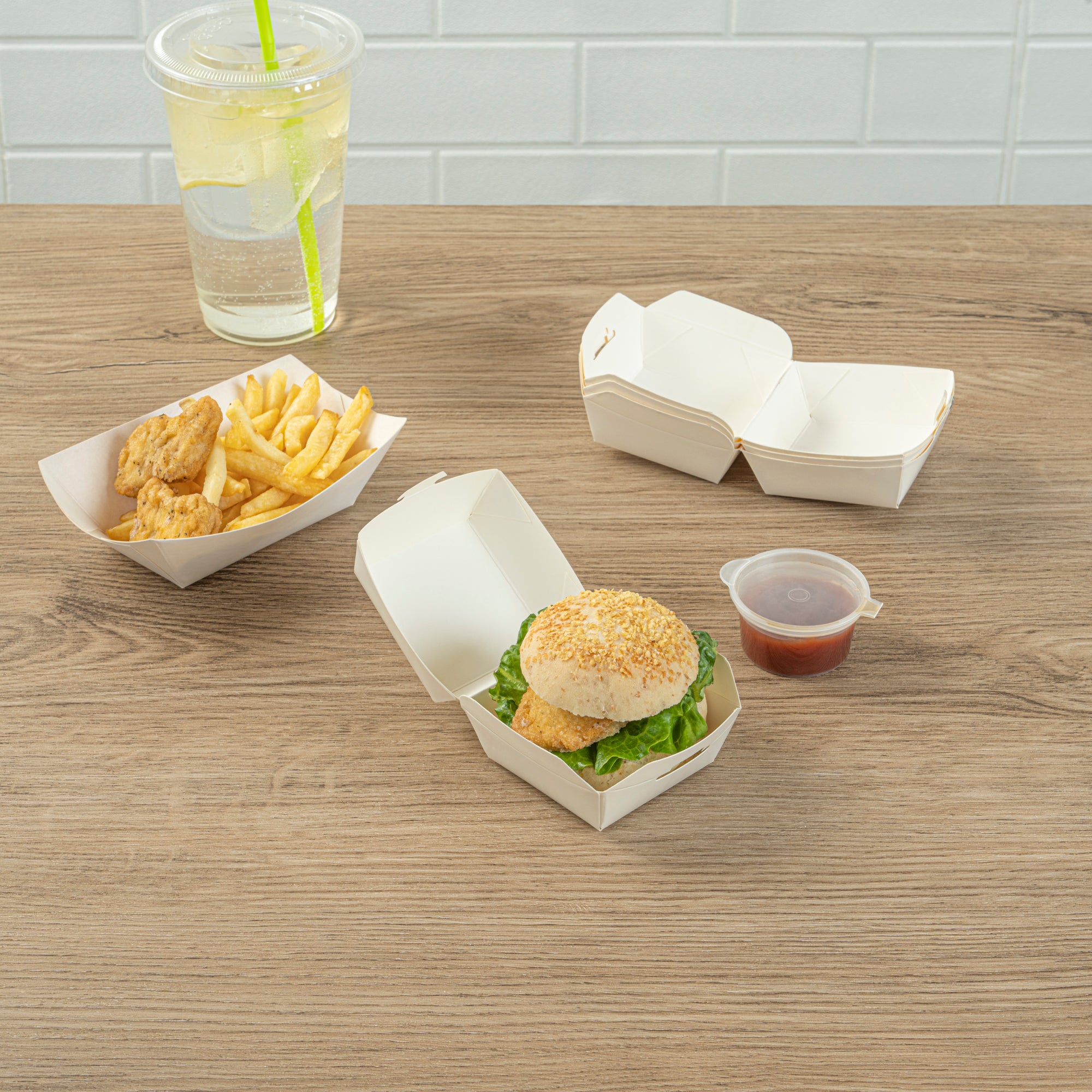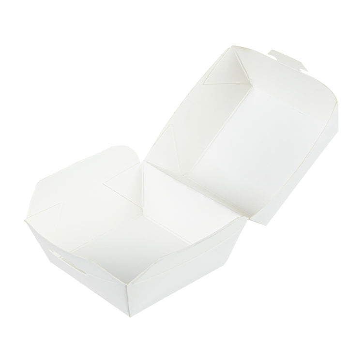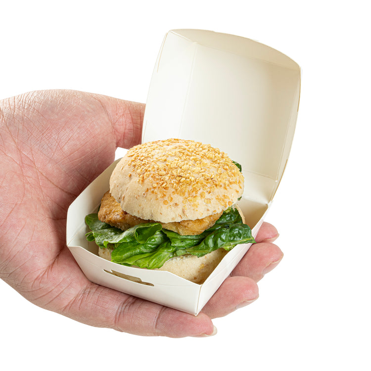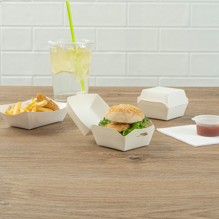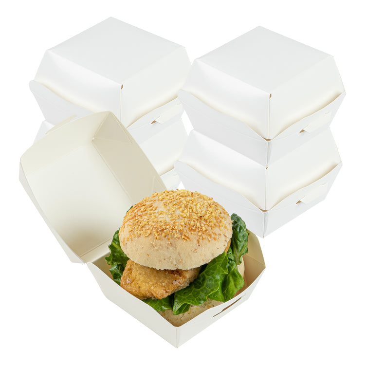 Serve miniature treats with our Bio Tek White Paper Slider Boxes. Crafted from premium paper, these slider packaging boxes have long-lasting durability. The chic white finish of these takeout boxes makes them attractive containers that are ideal for serving cookies, tarts, and sliders. To keep treats secure, these slider packaging boxes have a convenient tab lock closure. These clamshell food containers are disposable for a quick after-service cleanup. Measuring 2.5 inches in length by 2.5 inches in width by 2 inches in height, these burger boxes provide are lightweight and portable. Sold in a 100 count box.