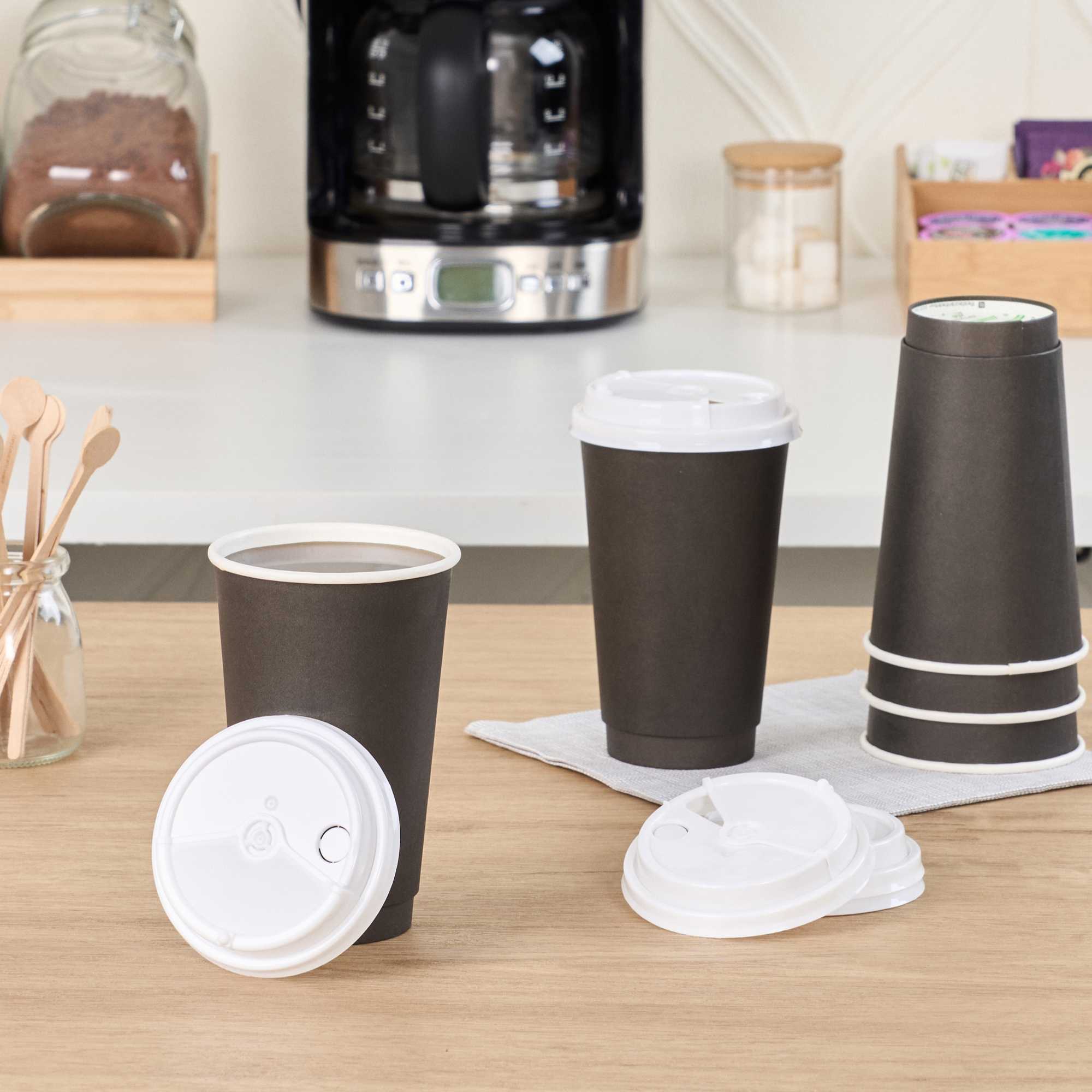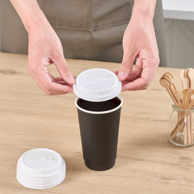 With a 2-in-1 design, these plastic lids have a rotating slider that allows you to choose between enjoying a drink with a straw or switching to the spout opening for comfortable sipping. These cup lids are suitable for your warm coffees or iced teas.
