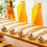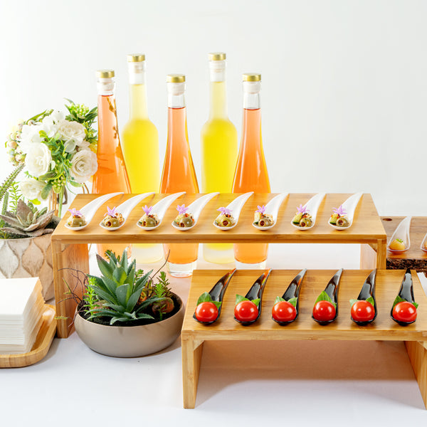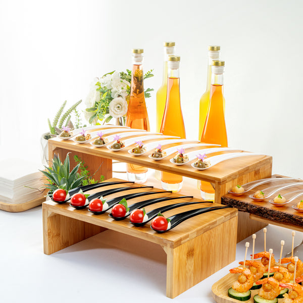 With a round, flat surface and slightly curved handle, these plastic serving spoons conveniently stand upright. Keep your samples intact!